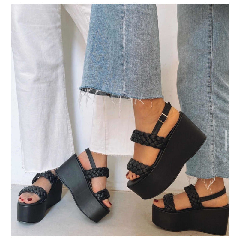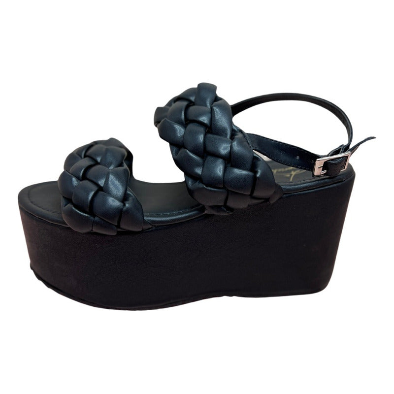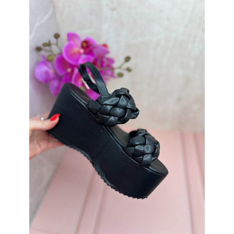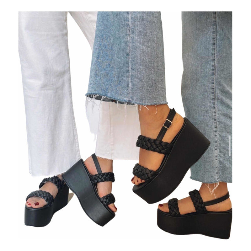HERMOSAS Y MODERNAS PLATAFORMAS DOBLE TRENZA COLOR NEGRAS.