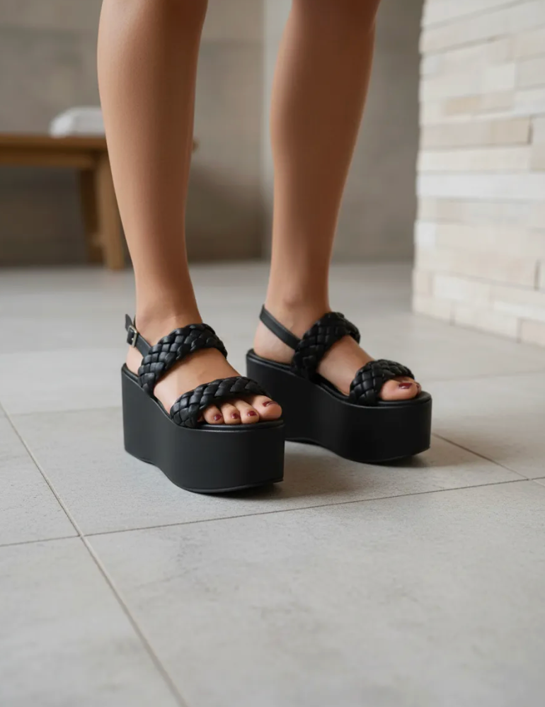 Eleva tu estilo con nuestras sandalias Sayra, el equilibrio perfecto entre comodidad y tendencia. Su diseño en color negro con tiras trenzadas aporta un toque moderno y sofisticado, mientras que la plataforma estiliza tu figura sin sacrificar estabilidad.