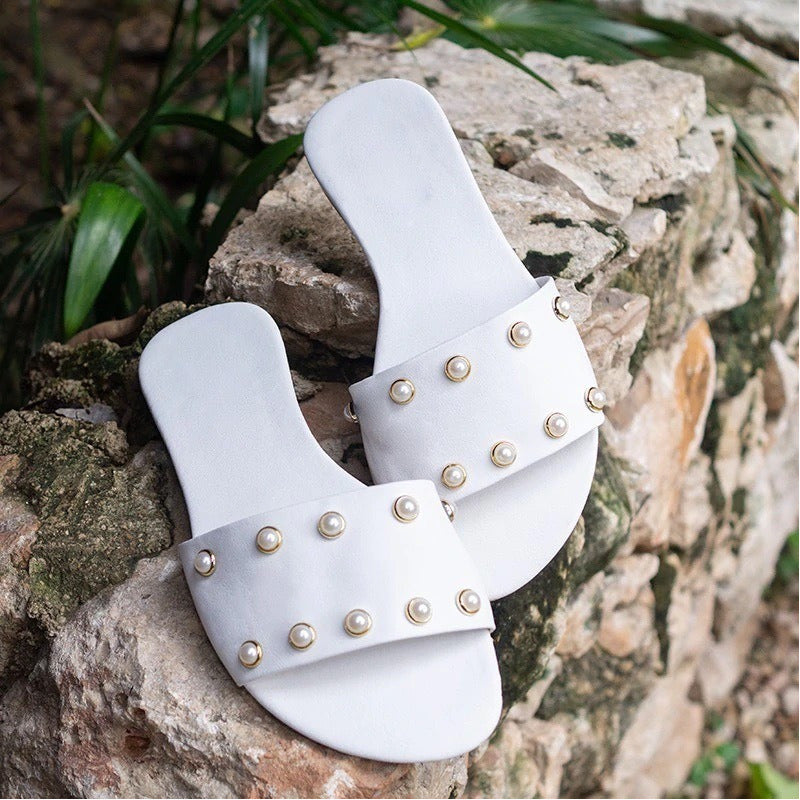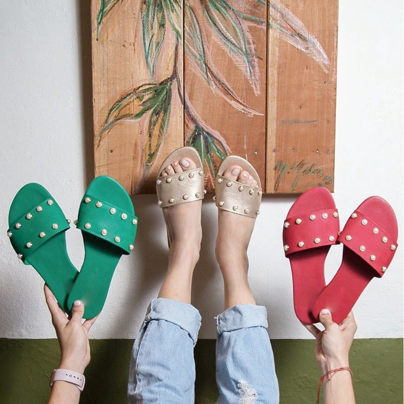 Sandalias Chanclas Mujer Con Perlas