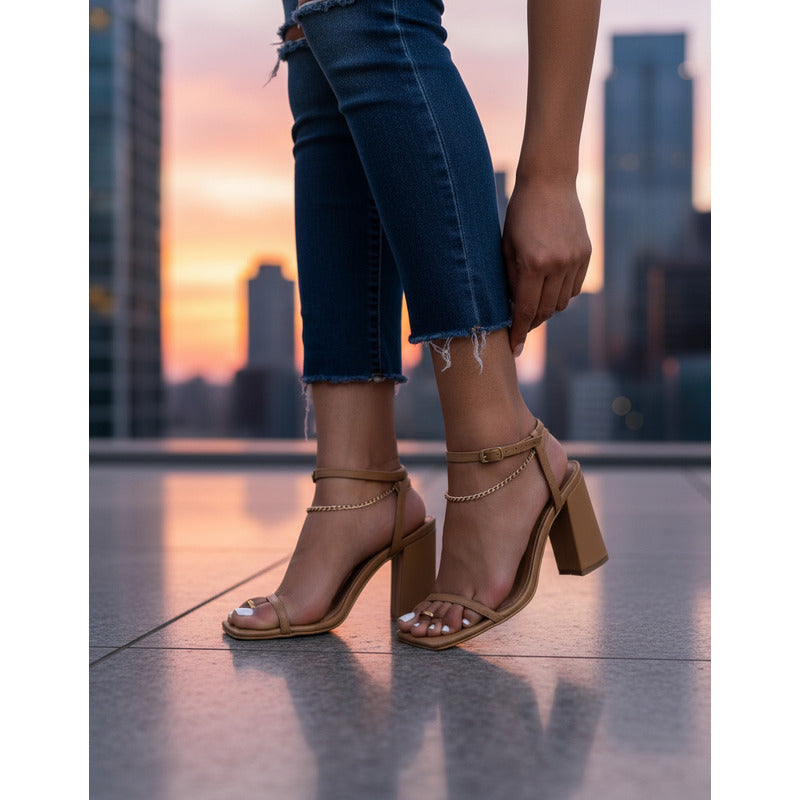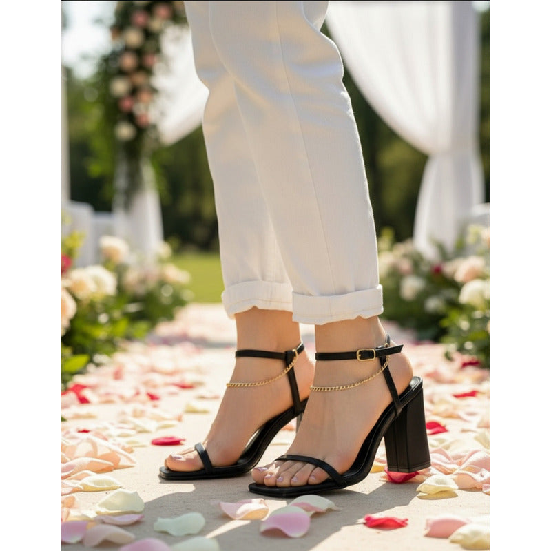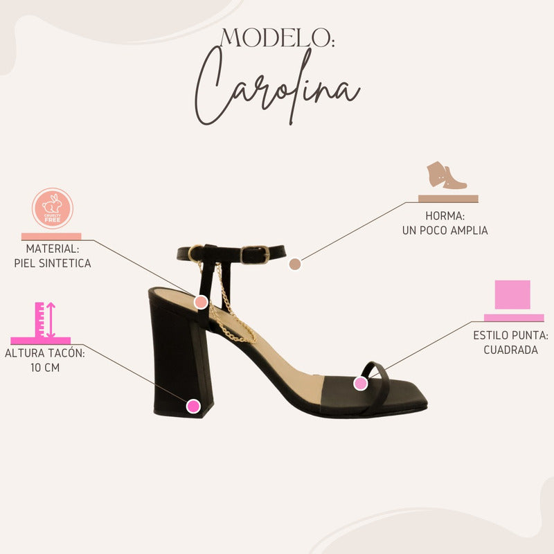 Las Zapatillas Carolina combinan elegancia y estilo en un diseño moderno con tacón cuadrado. Su detalle de cadena en el tobillo aporta un toque sofisticado que realza cualquier look, perfecto para eventos, salidas especiales o elevar tus outfits diarios. Fabricadas con materiales sintéticos de alta calidad, ofrecen comodidad y seguridad al caminar.
