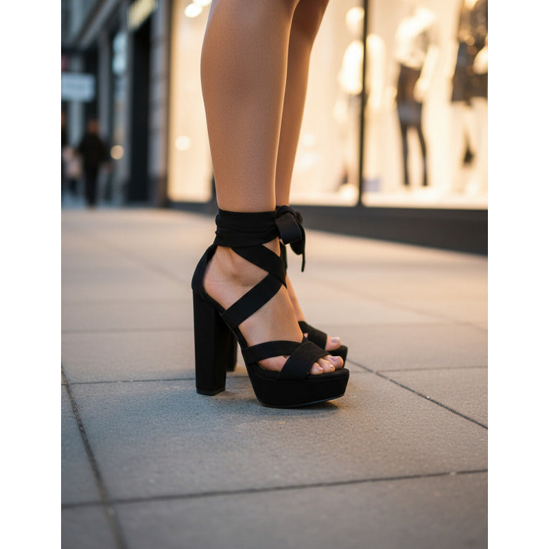 Zapatillas Plataformas Sandalia Tacon Alto Lazo Amarrar Dama