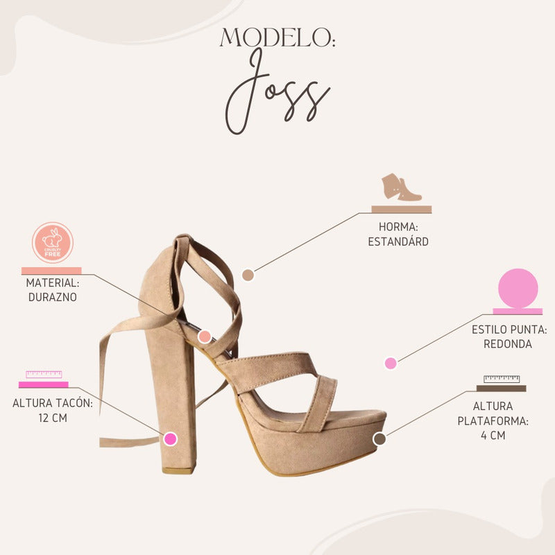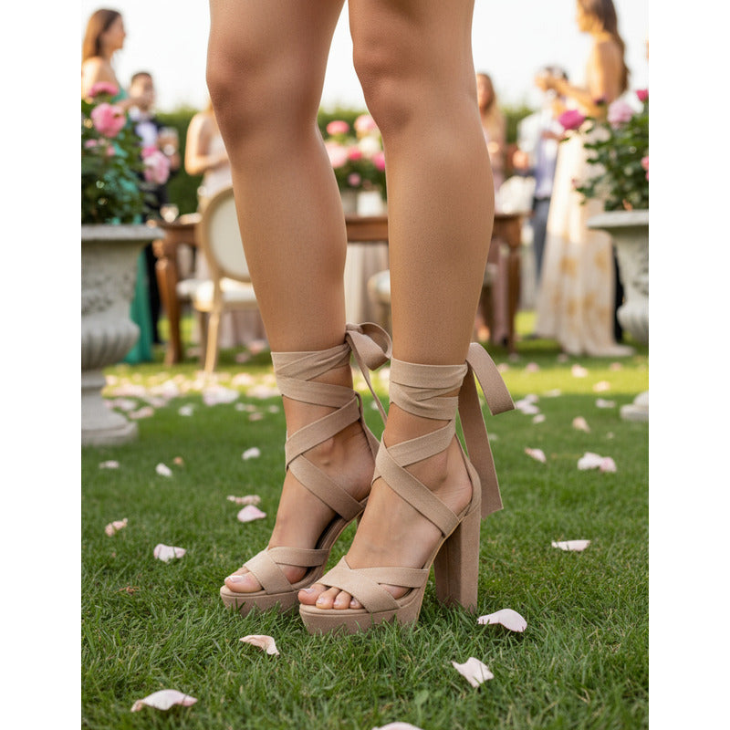 Hermosas y cómodas sandalias altas de tacón alto con tiras para amarra en tobillo o tipo gladiador. ESPECÍFICACIONES: Altura tacón: 12 cm Altura plataforma: 4 cm Material: durazno Punta: Redonda Hechas a mano con los mejores estándares de calidad