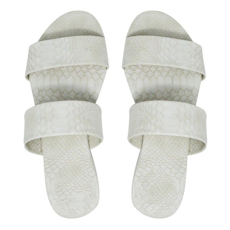 HERMOSAS Y COMODAS SANDALIAS DOBLE TIRA ESTAMPADO SERPIENTE COLOR CREMA.