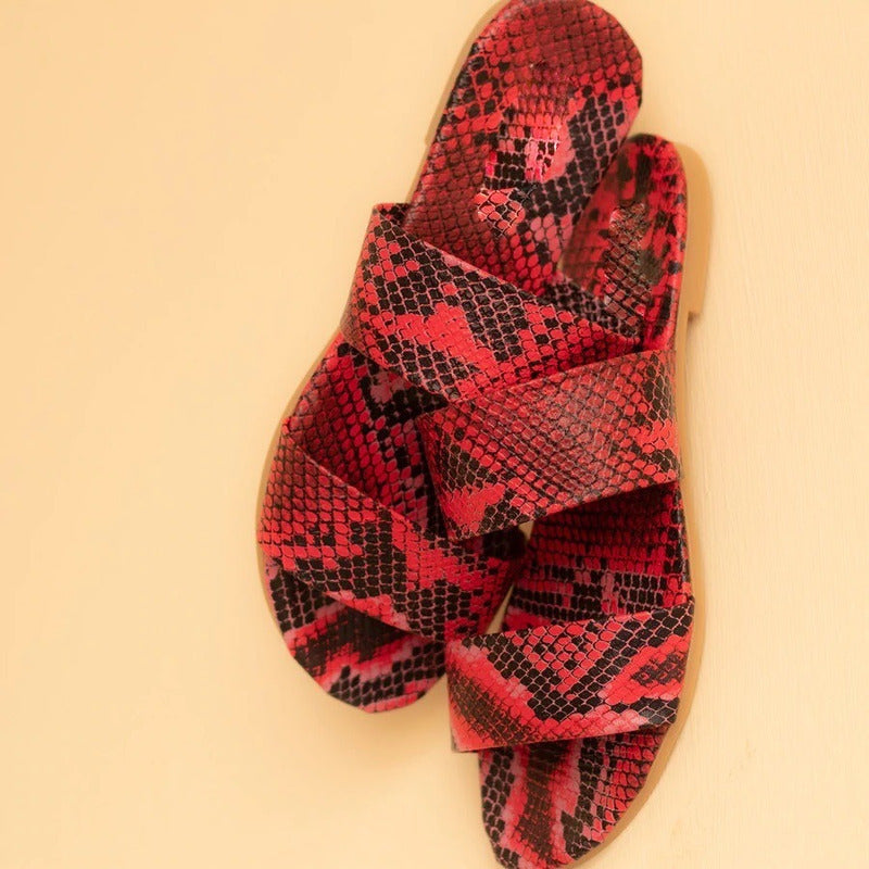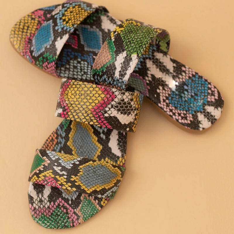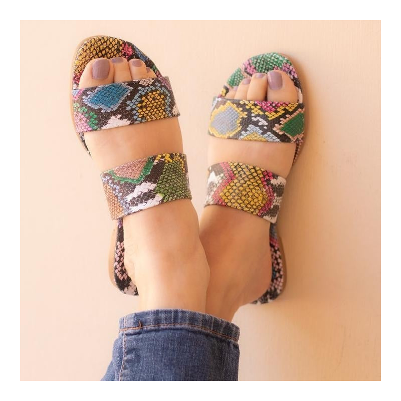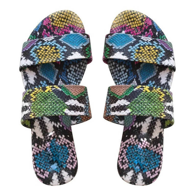 Sandalia Mujer Chancla Doble Tiras Animal Print Serpiente