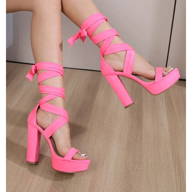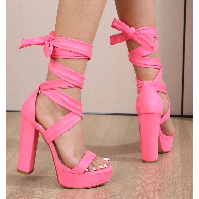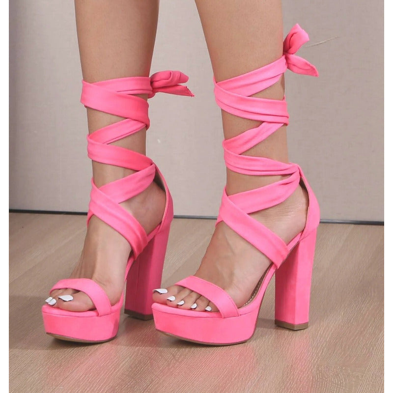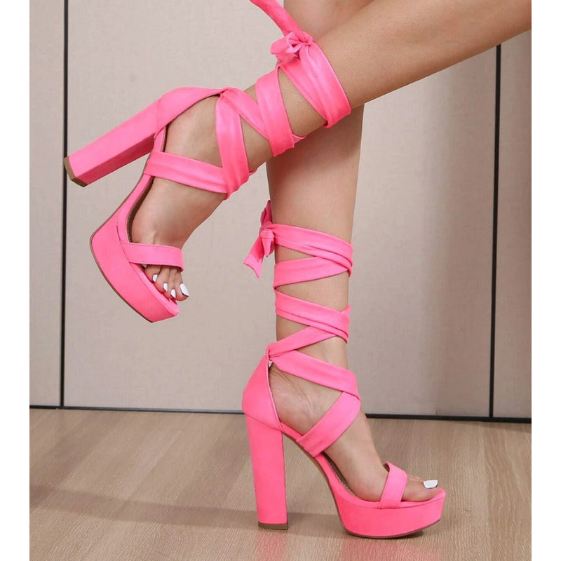 Zapatillas Con Plataformas Lazo Amarrar Sandalia Tacon Alto
