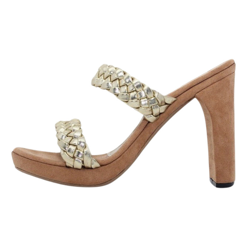 Modelo Bélgica Oro – Zapatillas De Mujer Sandalia Alta Trenzada Oro Tacones 12 cm