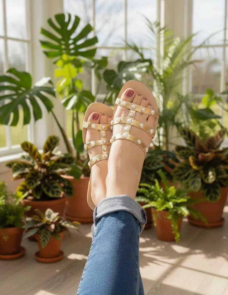 Modelo Dolores – Sandalias de Piso con Perlas