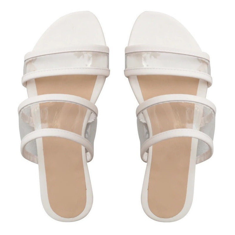 Sandalia Mujer De Piso Blancas Con Transparencias