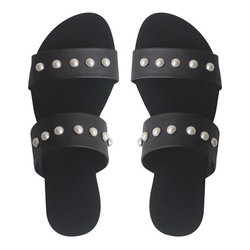 Sandalias Para Mujer Tiras Gruesas Con Perlas