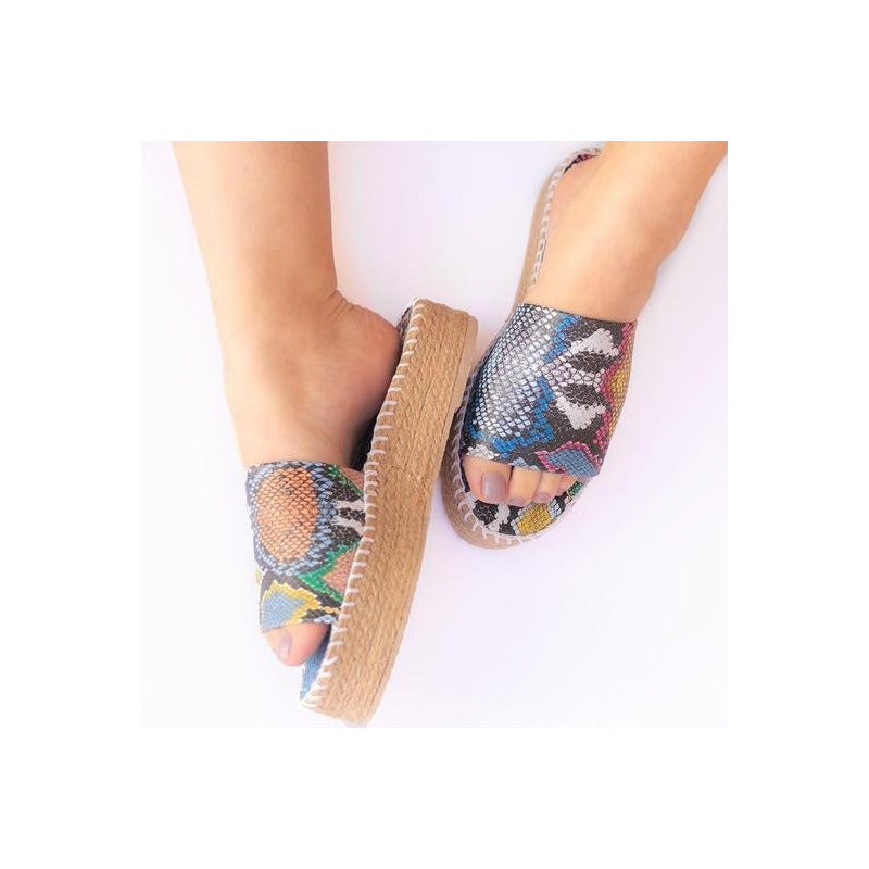 HERMOSAS SANDALIAS CON PEQUEÑA PLATAFORMA EN YUTE DE COLORES COMBINADOS/SERPIENTE. MATERIAL TRANSPIRABLE: Usamos Materiales sintéticos para Mantener la frescura. RESISTENTES: Nuestras sandalias están hechas para usarlas en cualquier ocasión en especial en la playa. ANTIDERRAPANTE: Pensamos en tu seguridad con suelas especiales para que nunca te Resbales. Diseñadas y fabricadas con altos estándares de calidad.
