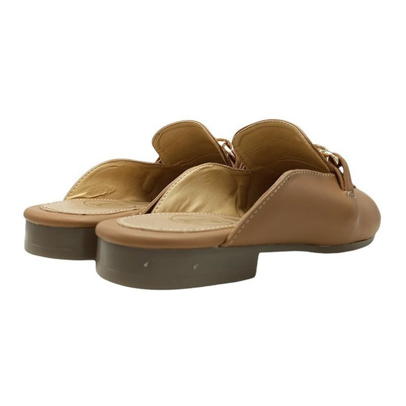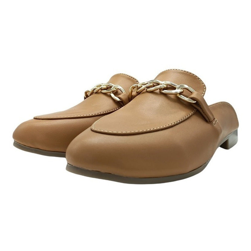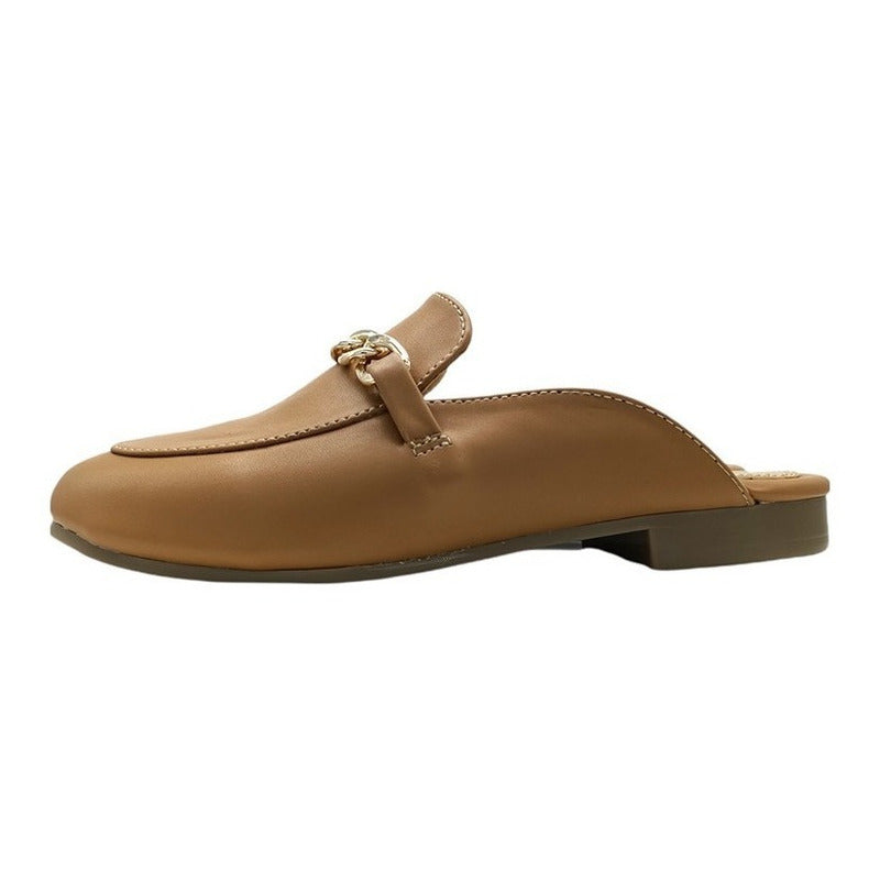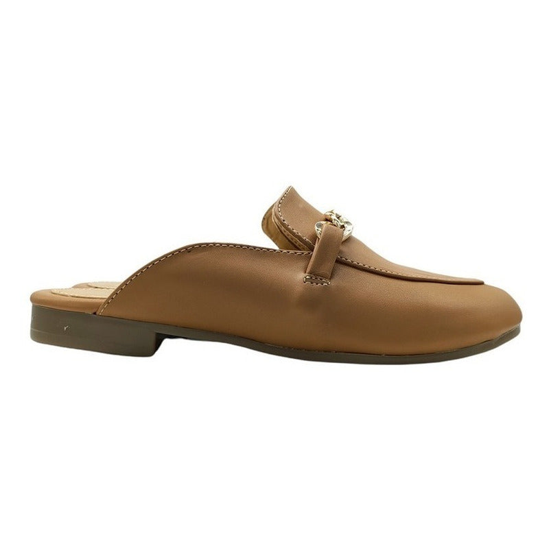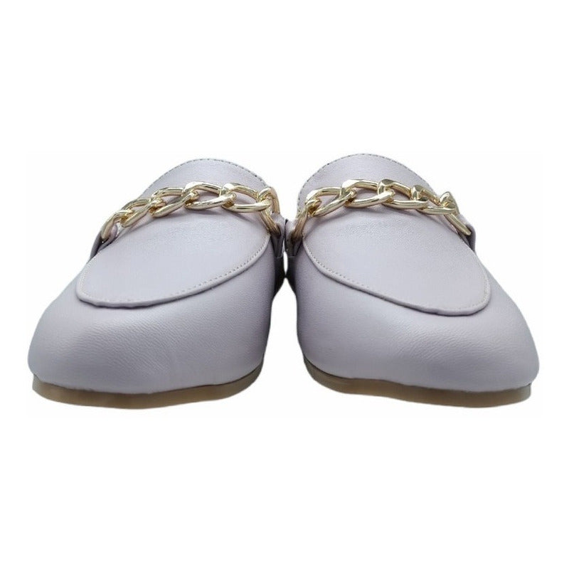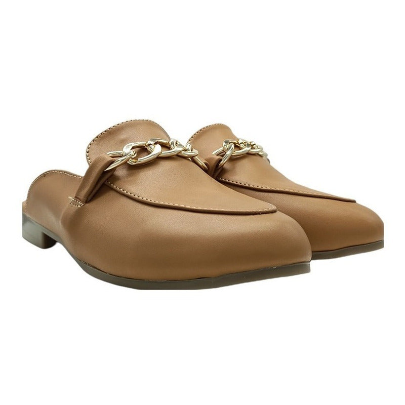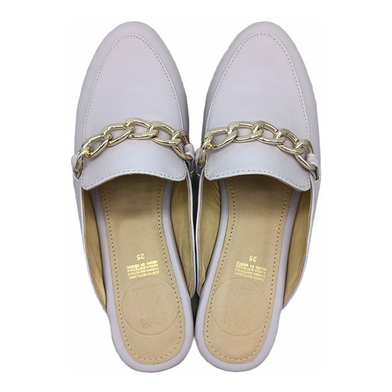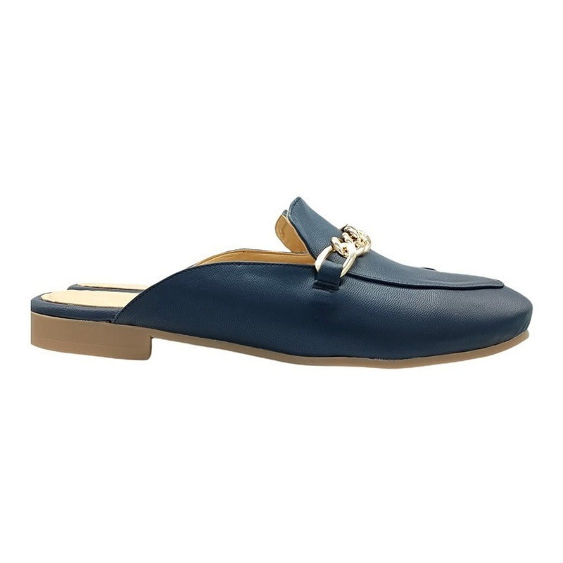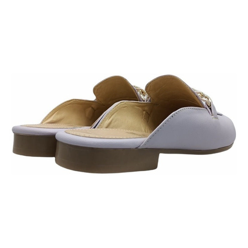 Mules slip-on realizados con piel sintética con herraje al frente.