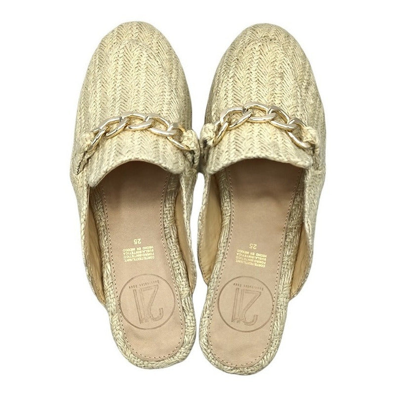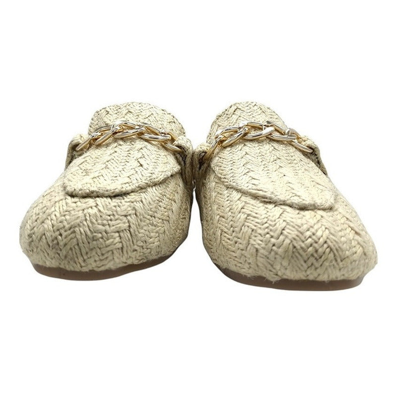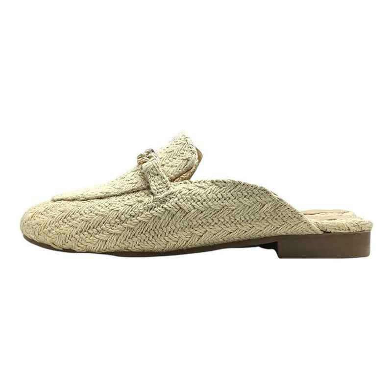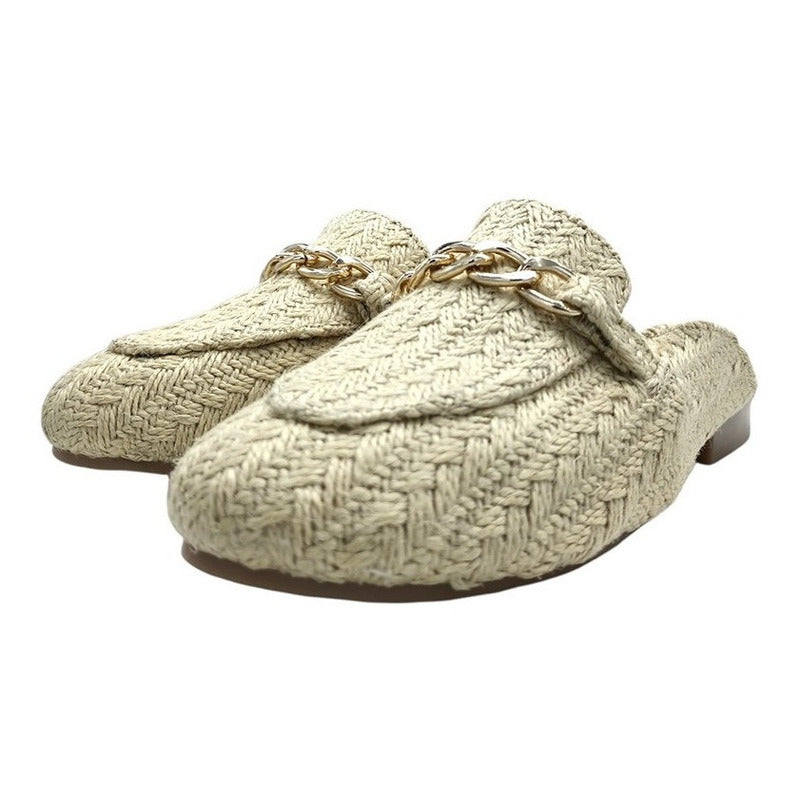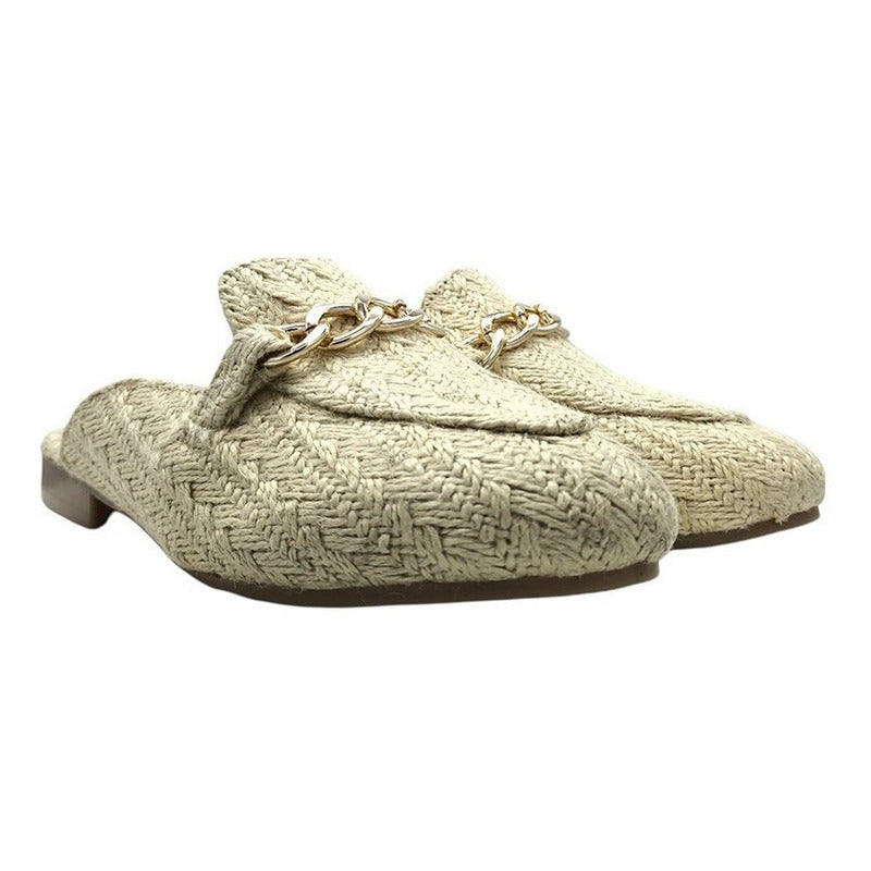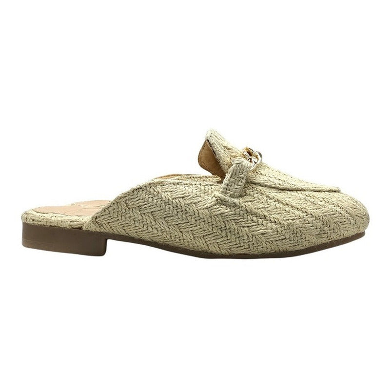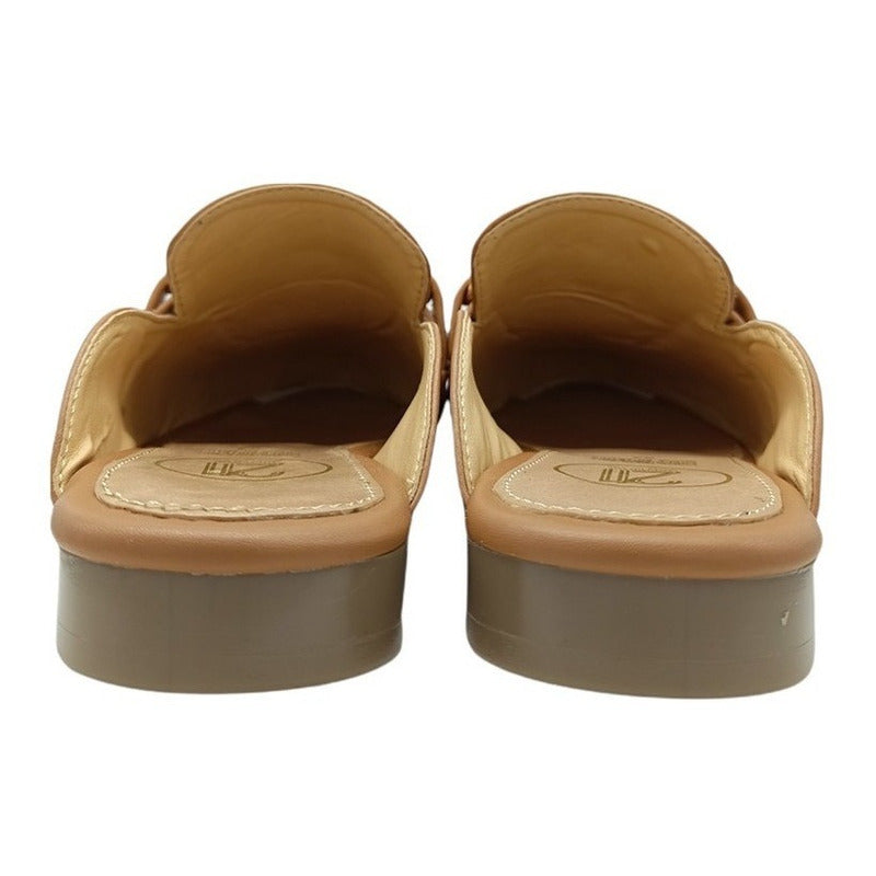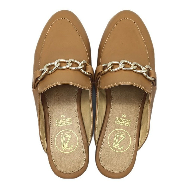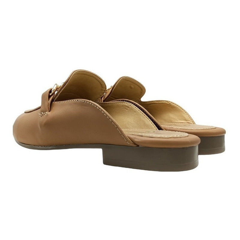 Mules slip-on realizados con piel sintética con herraje al frente.
