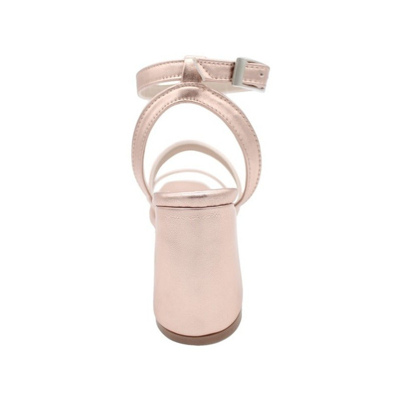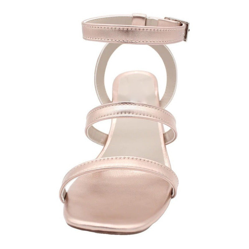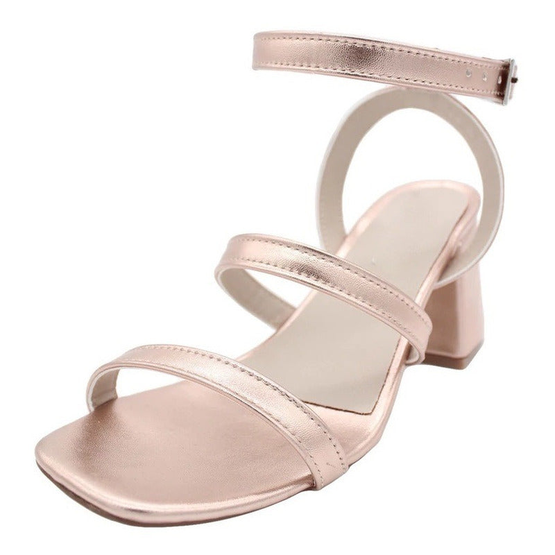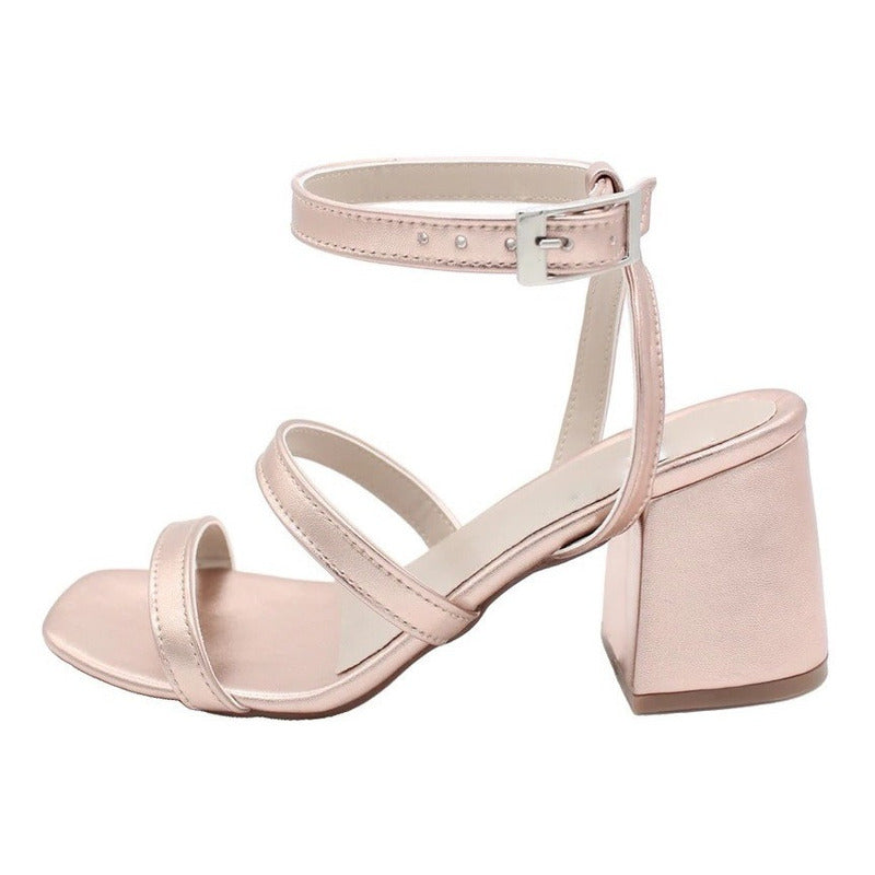 Zapatilla Mujer Oro Rosa Tacón Grueso Pulsera Tobillo 8 Cm