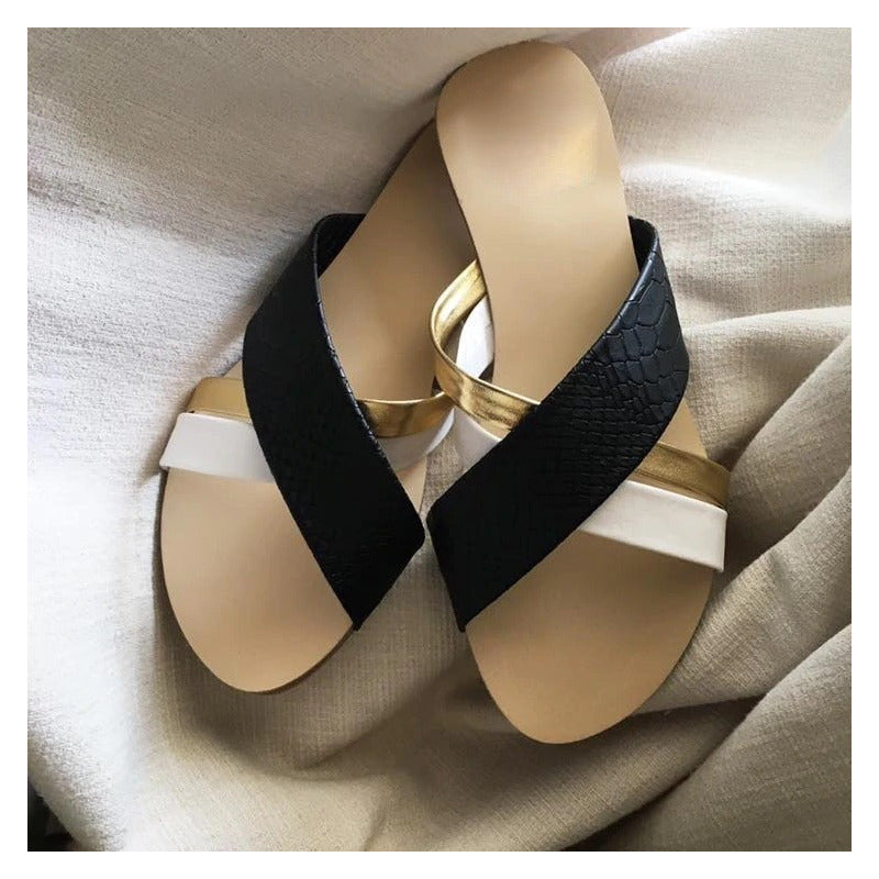 HERMOSAS SANDALIAS DE PISO CON TIRAS CRUZADAS CON COLORES COMBINADOS. MATERIAL TRANSPIRABLE: Usamos Materiales sintéticos para Mantener la frescura. RESISTENTES: Nuestras sandalias están hechas para usarlas en cualquier ocasión en especial en la playa. ANTIDERRAPANTE: Pensamos en tu seguridad con suelas especiales para que nunca te Resbales. Diseñadas y fabricadas con altos estándares de calidad.