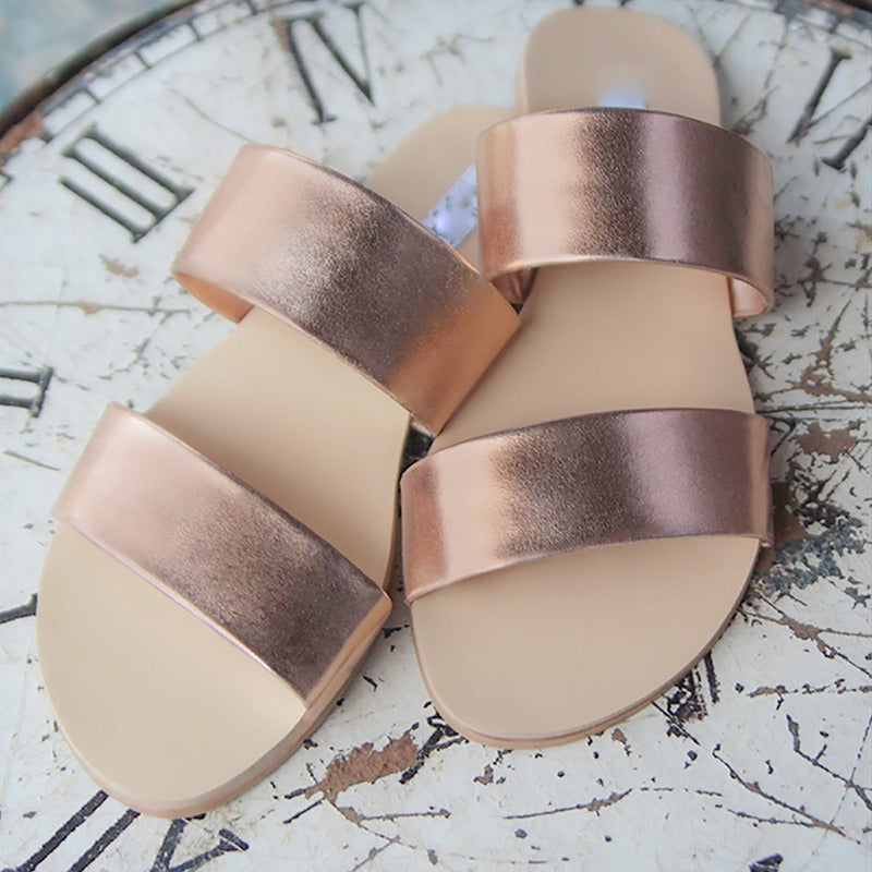 Las sandalias Bahamas son el equilibrio perfecto entre comodidad, frescura y estilo. Con un diseño minimalista de dos tiras anchas y acabado metálico o liso (según color), se adaptan a cualquier outfit, desde lo casual hasta lo elegante.