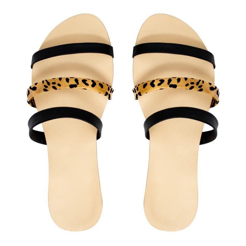 Sandalias De Mujer Negras Animal Print Sandalia Dama Huarach