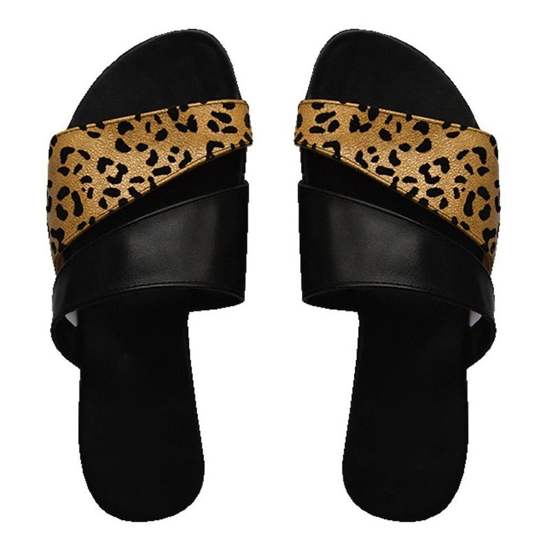 Sandalias Mujer Negro Y Leopardo Detalle Descubierto