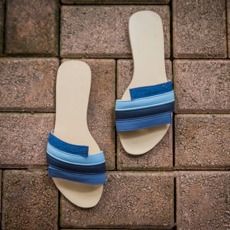 HERMOSAS Y COMODAS SANDALIAS/HUARACHES DE METER O SLIP ON TIRAS DE DIFERENTE TONOS DE AZUL.