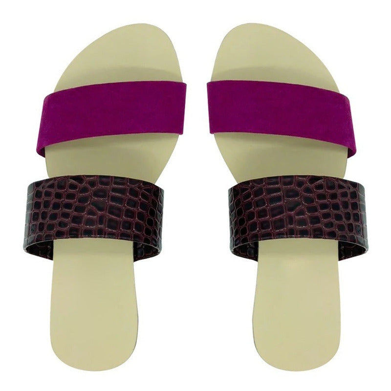 Sandalias Mujer Morada Tiras Combinadas Chancla Dama