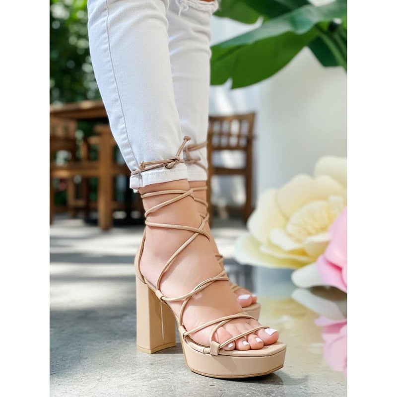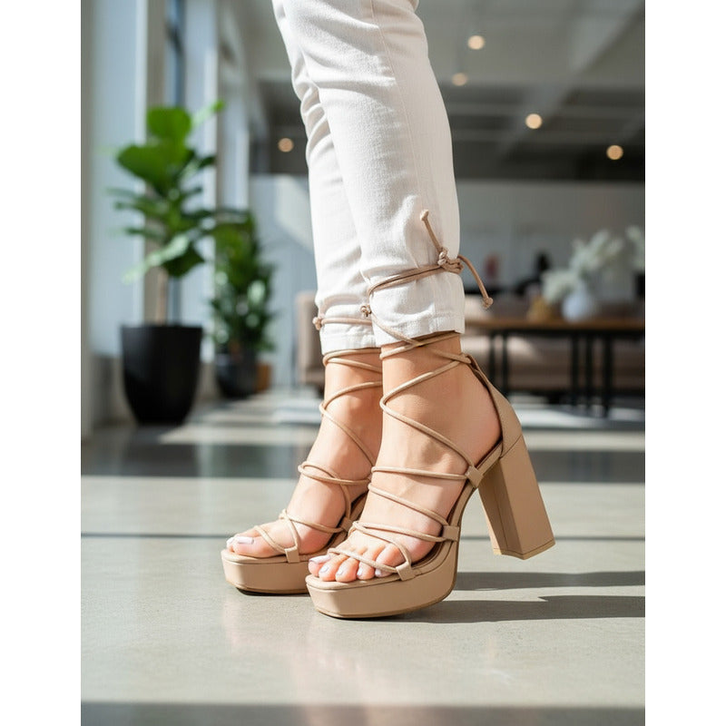 Espectaculares Zapatillas o Sandalias Altas Tacón Grueso con tiras de Amarrar Hecho artesanalmente en México. ALTURA: 11 CM