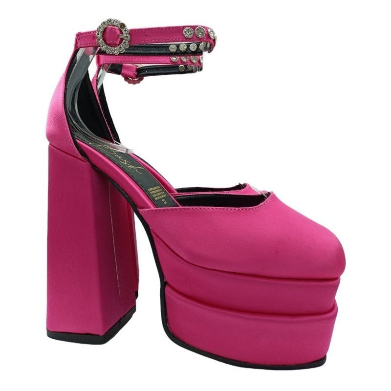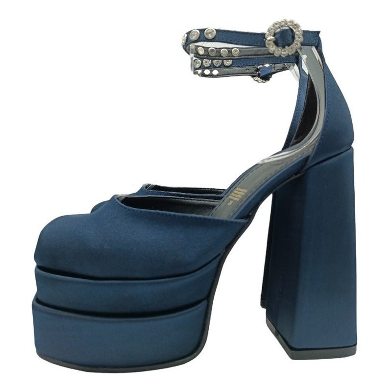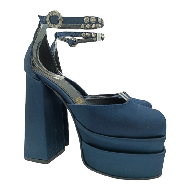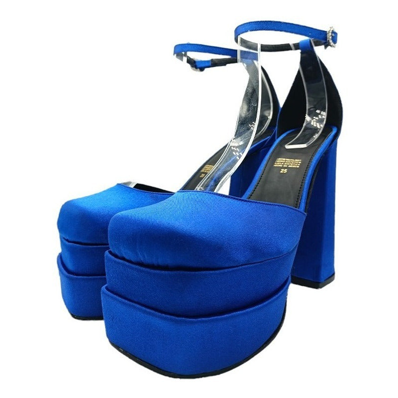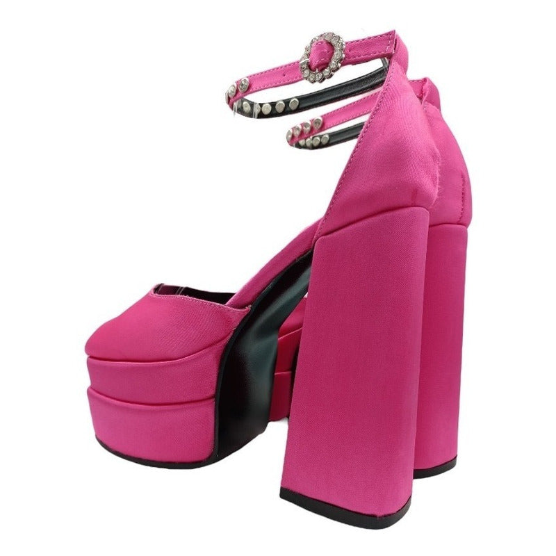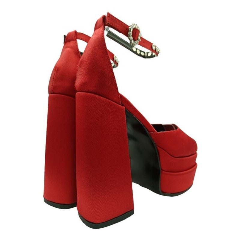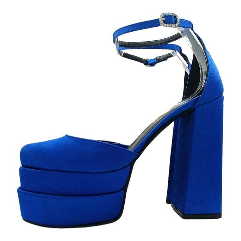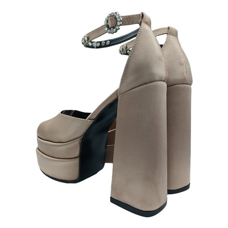 Su punta redondeada ofrece un look elegante y juvenil, mientras que la correa al tobillo con detalles brillantes añade un toque femenino y sofisticado. A pesar de su altura, el tacón ancho brinda estabilidad, haciéndolas ideales para eventos largos, fiestas, sesiones de fotos y noches especiales.