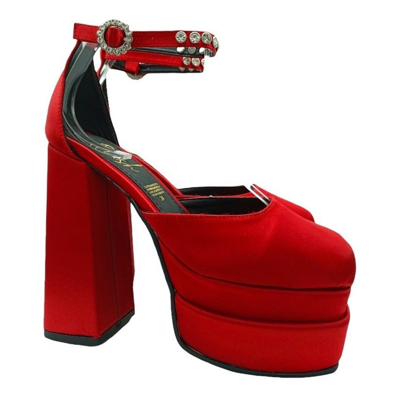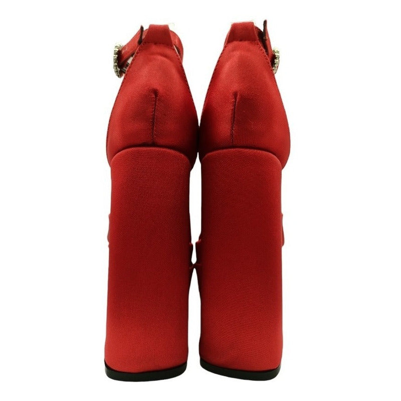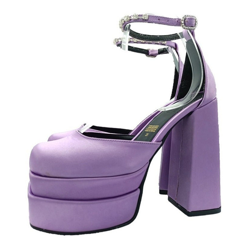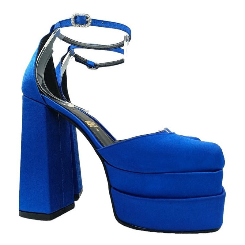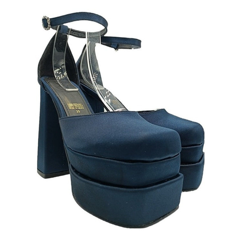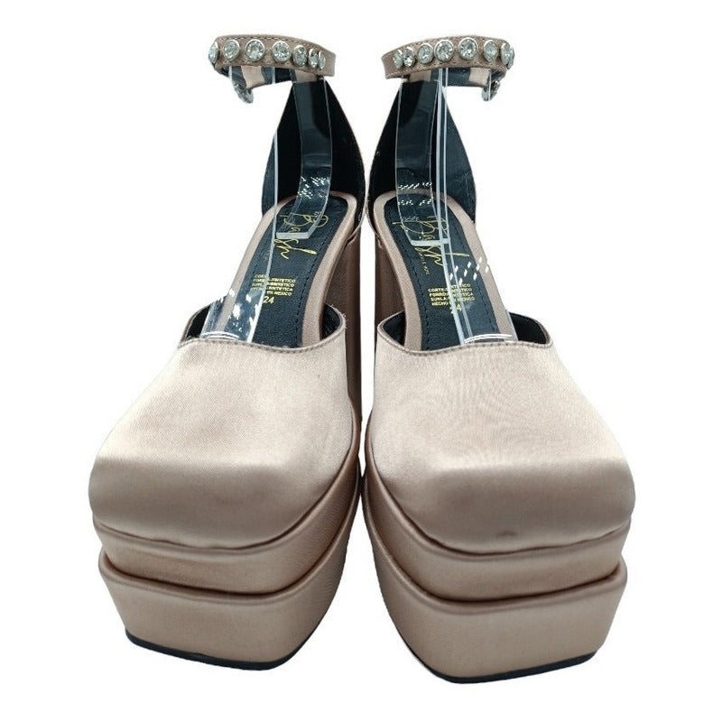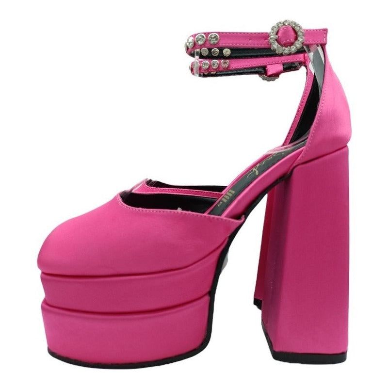 Su punta redondeada ofrece un look elegante y juvenil, mientras que la correa al tobillo con detalles brillantes añade un toque femenino y sofisticado. A pesar de su altura, el tacón ancho brinda estabilidad, haciéndolas ideales para eventos largos, fiestas, sesiones de fotos y noches especiales.