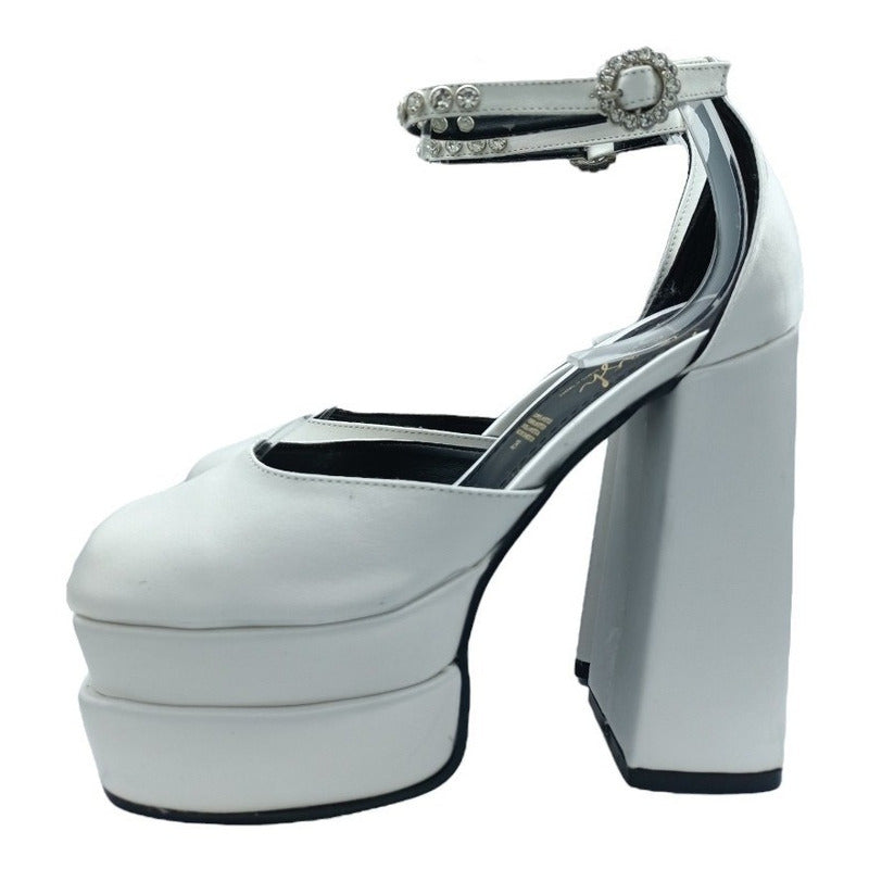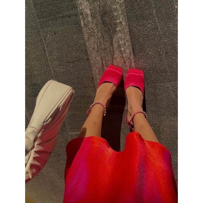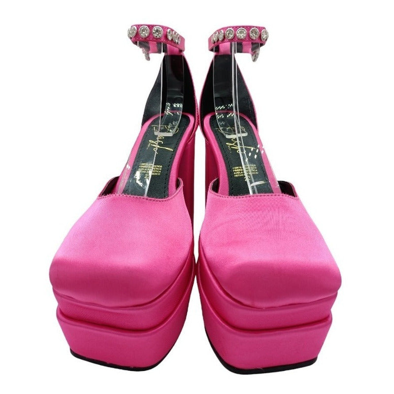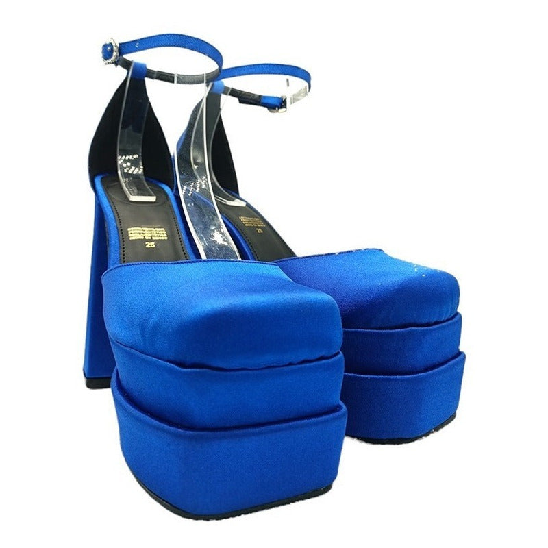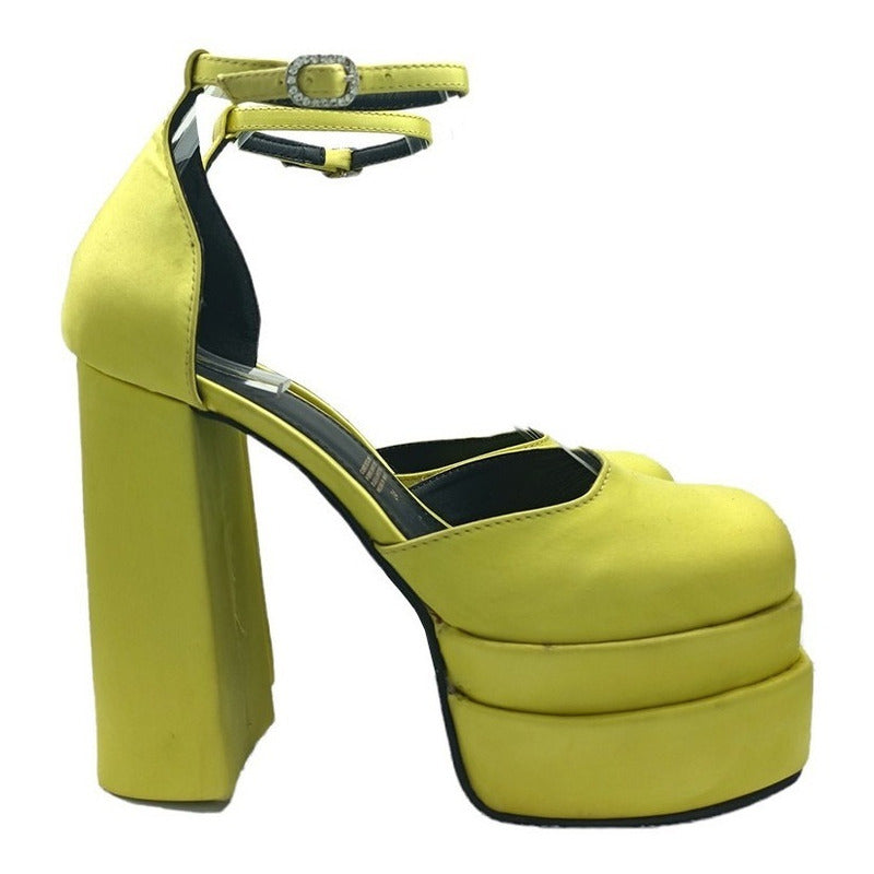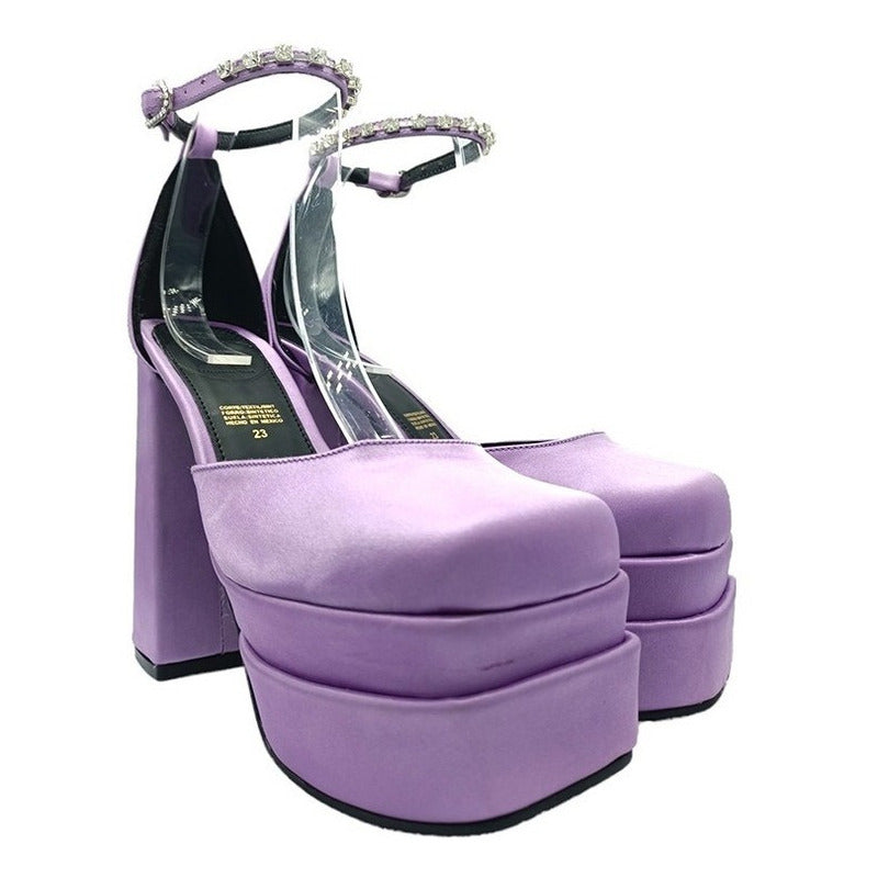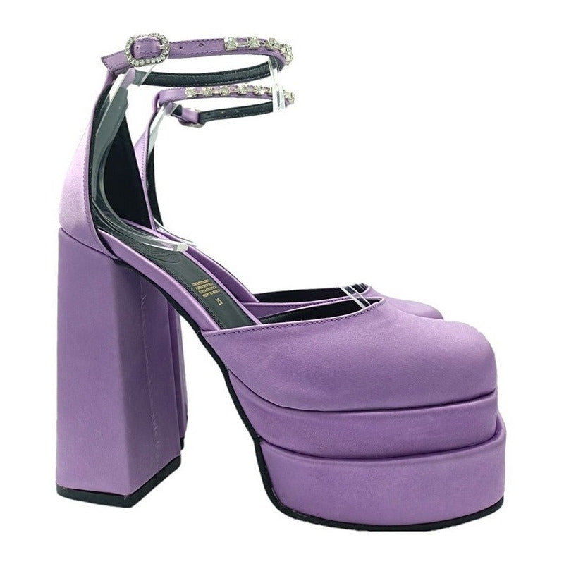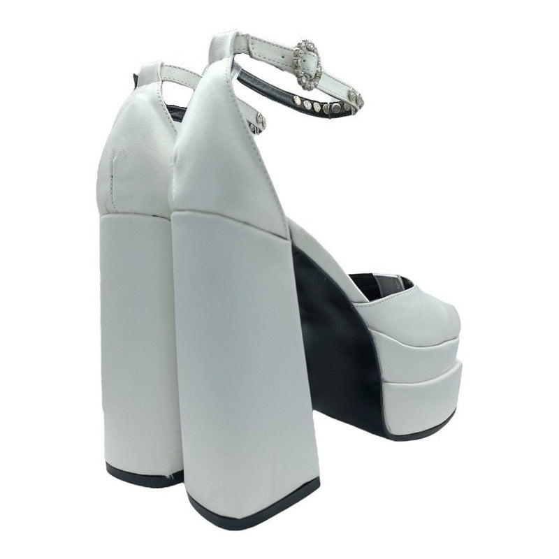 Su punta redondeada ofrece un look elegante y juvenil, mientras que la correa al tobillo con detalles brillantes añade un toque femenino y sofisticado. A pesar de su altura, el tacón ancho brinda estabilidad, haciéndolas ideales para eventos largos, fiestas, sesiones de fotos y noches especiales.