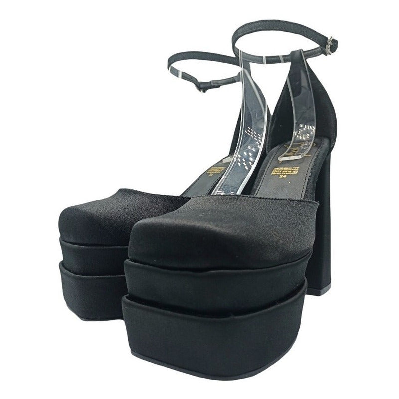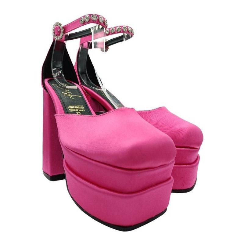 El modelo 416 es la definición de impacto, glamour y presencia. Diseñado para mujeres que aman destacar, este par combina plataforma alta, tacón grueso y una silueta moderna que estiliza la figura desde el primer paso.