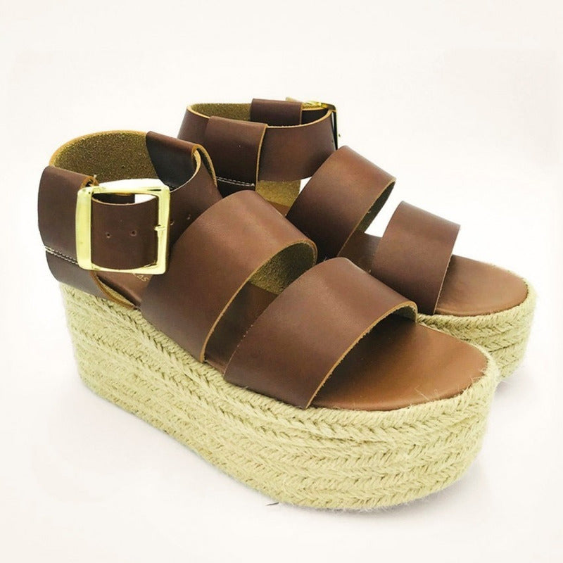Plataformas de yute con piel sintética, ideales para caminar y caminar. Altura: Talón de 8 cm. y Puntera de 5.5 cm.