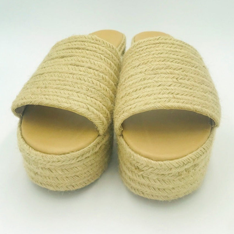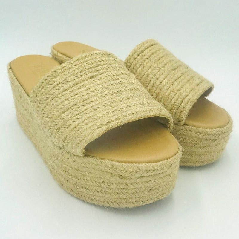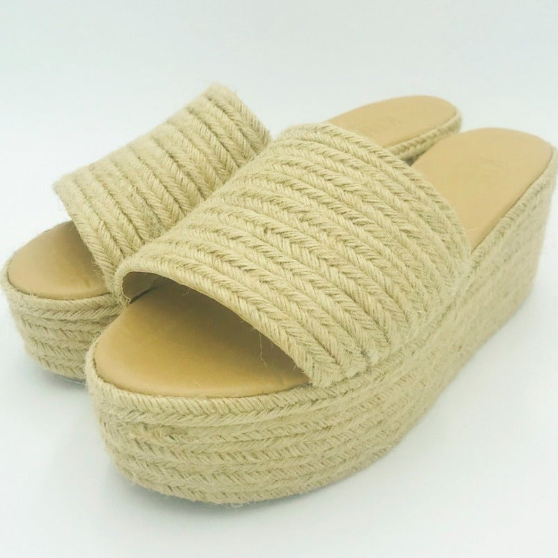 Sandalias tipo plataforma elaboradas con yute artesanal, ideales para el fin de semana o para complementar outfits frescos y casuales. Diseñadas y fabricadas 100% por manos mexicanas.