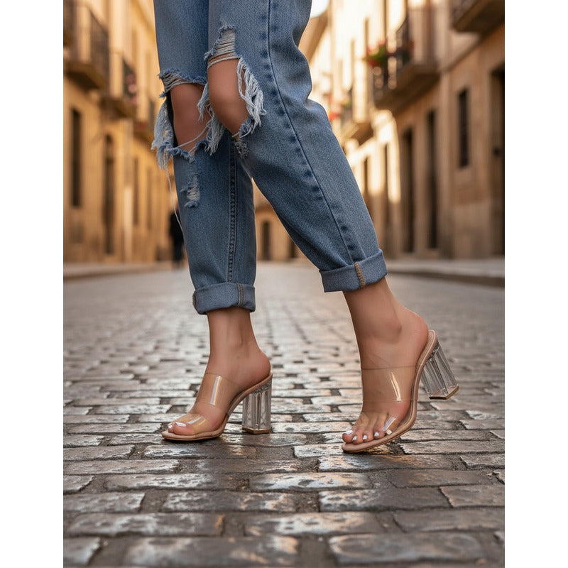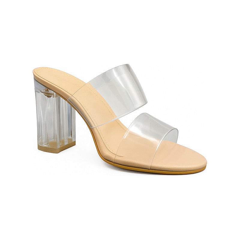 HERMOSAS Y ELEGANTES ZAPATILLAS ALTAS TIRA TRANSPARENTE TACON CRISTAL/TRANSPARENTE. ALTURA: 8 CM