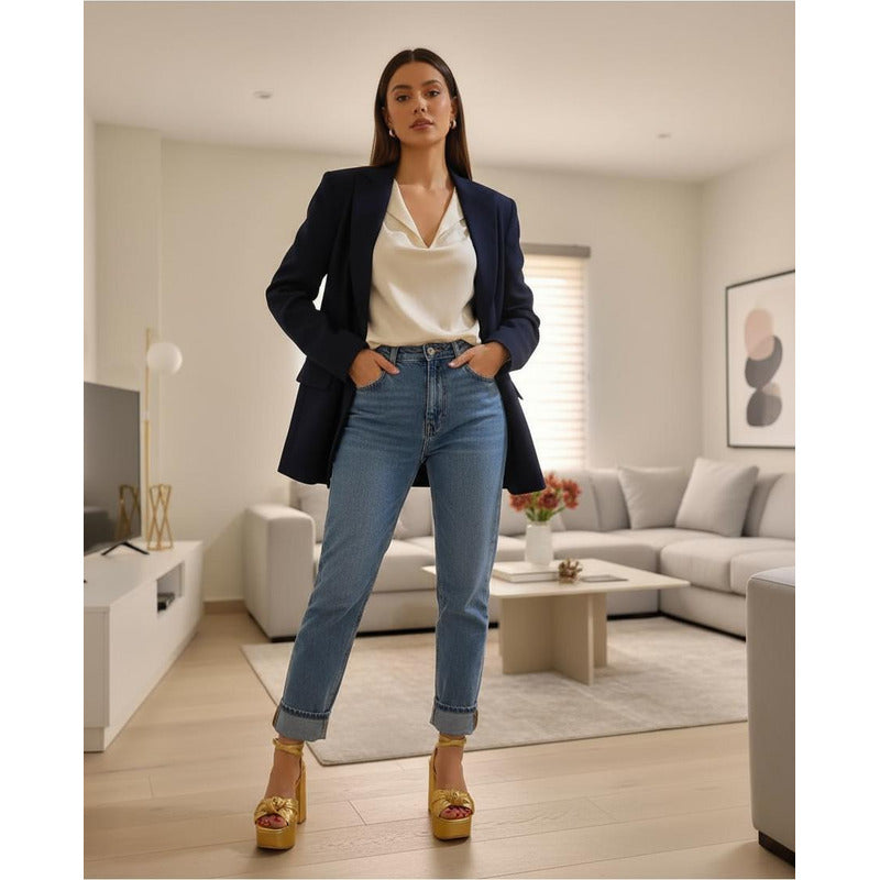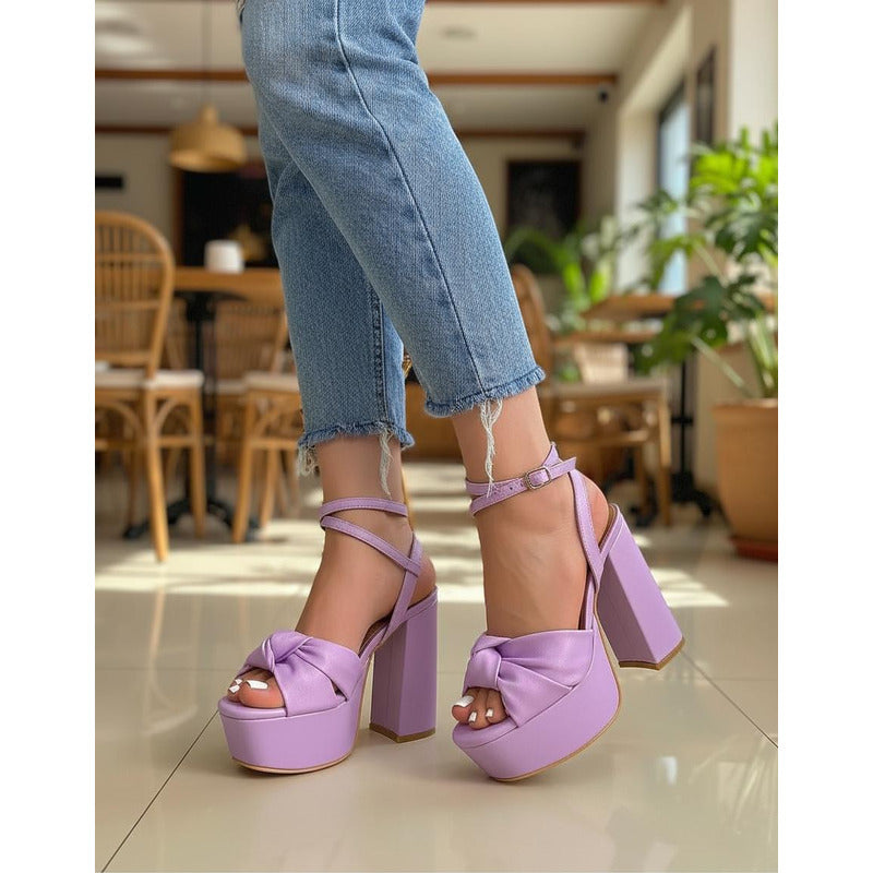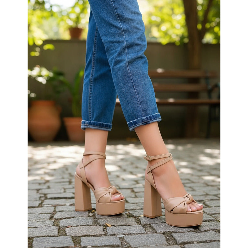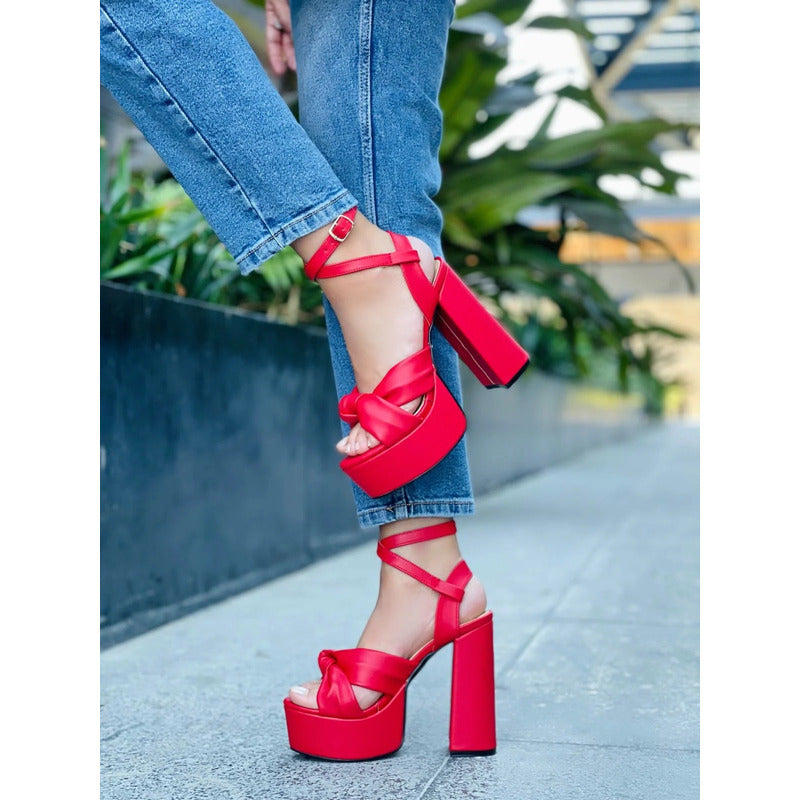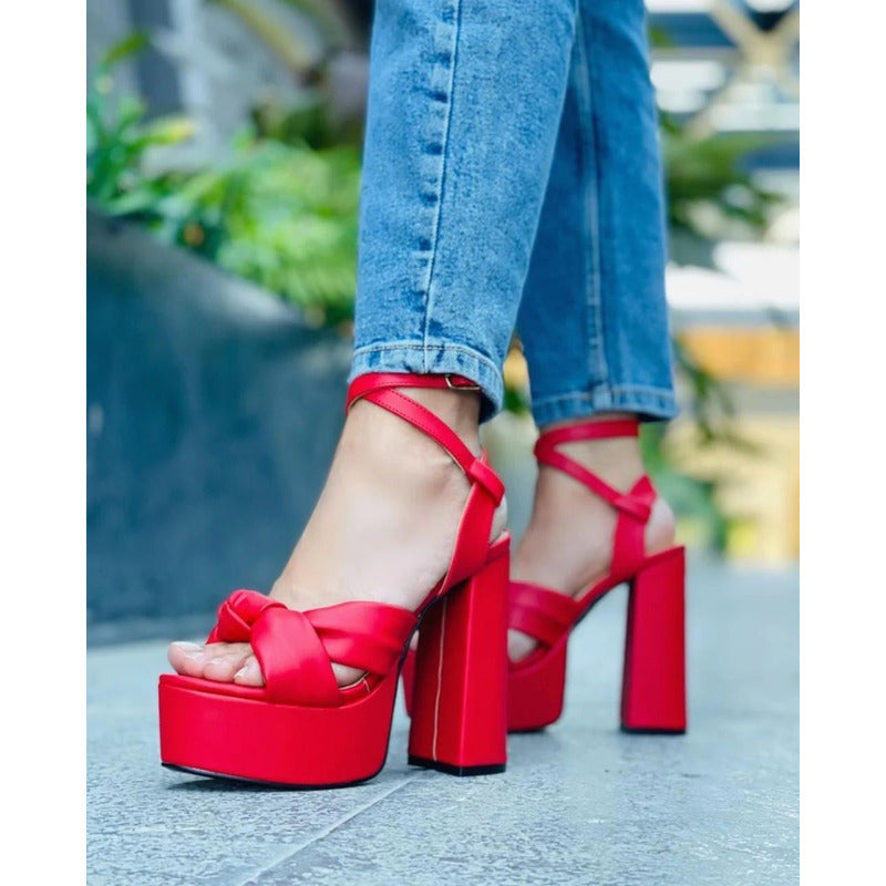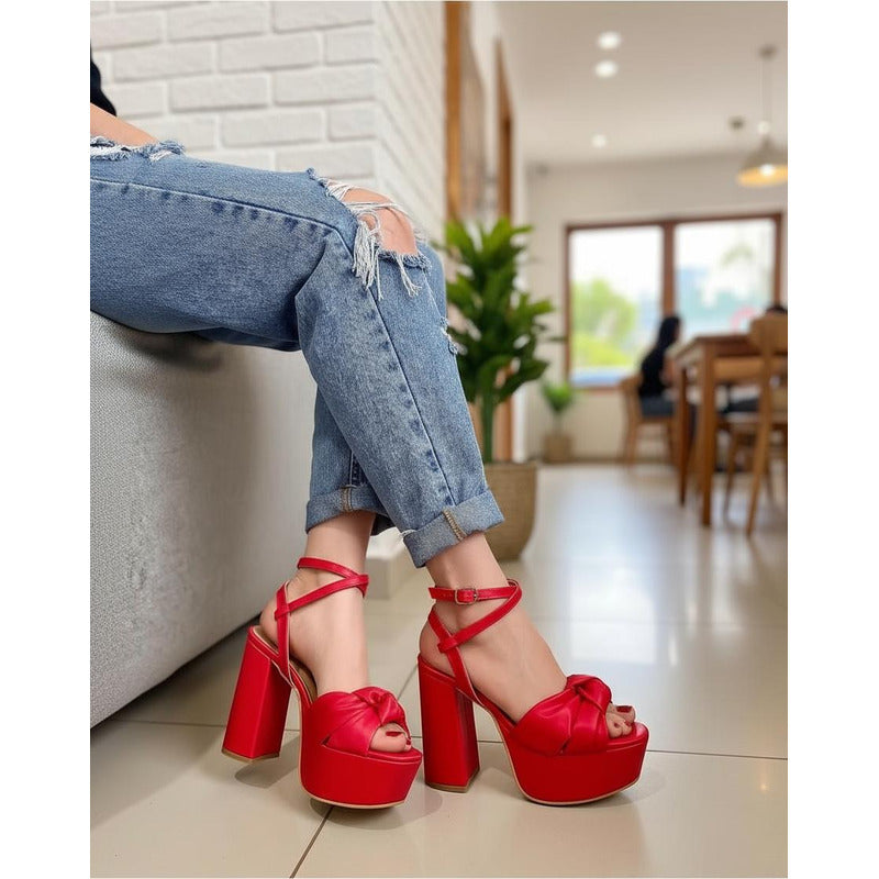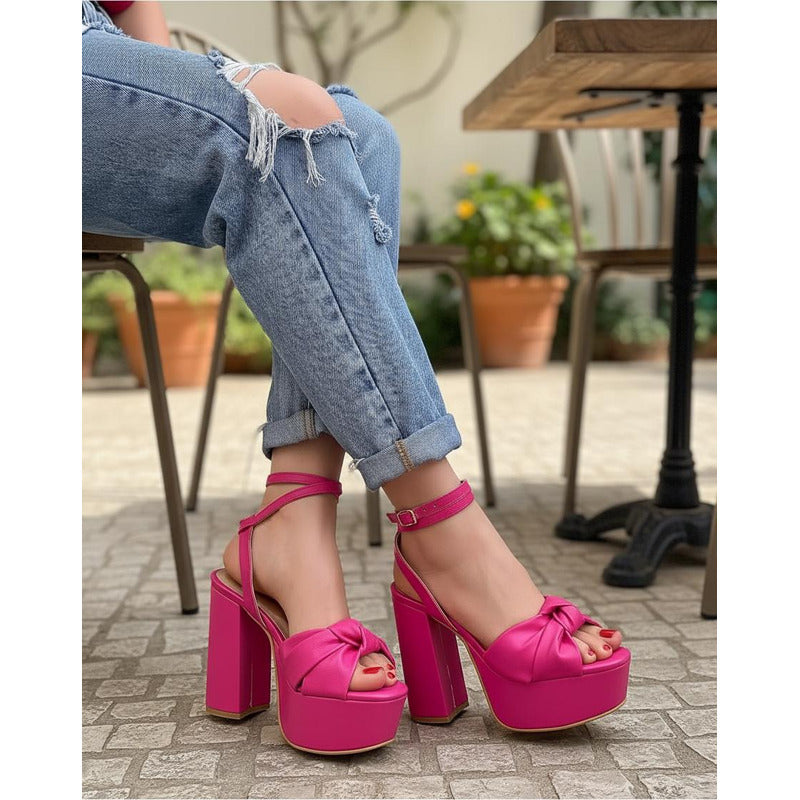 Zapatillas Plataformas Tacón Ancho Tira Tobillera