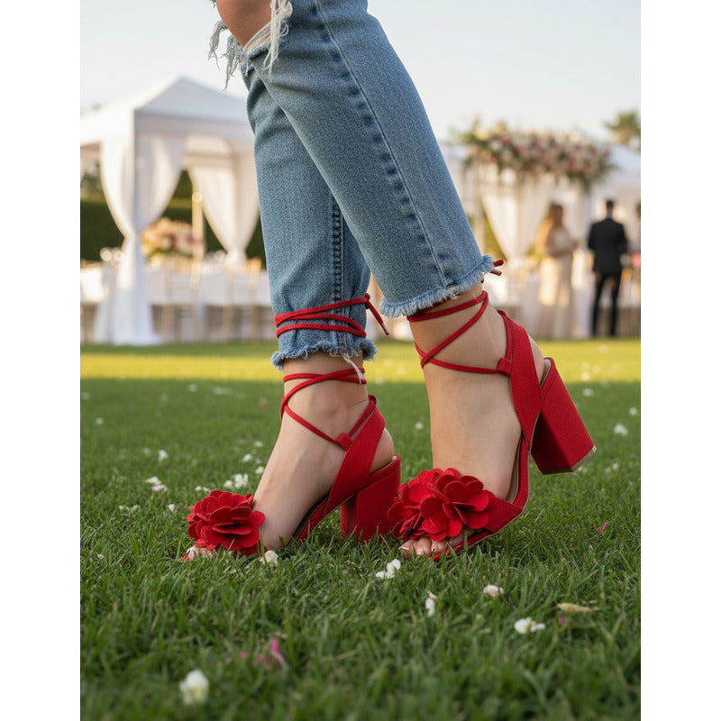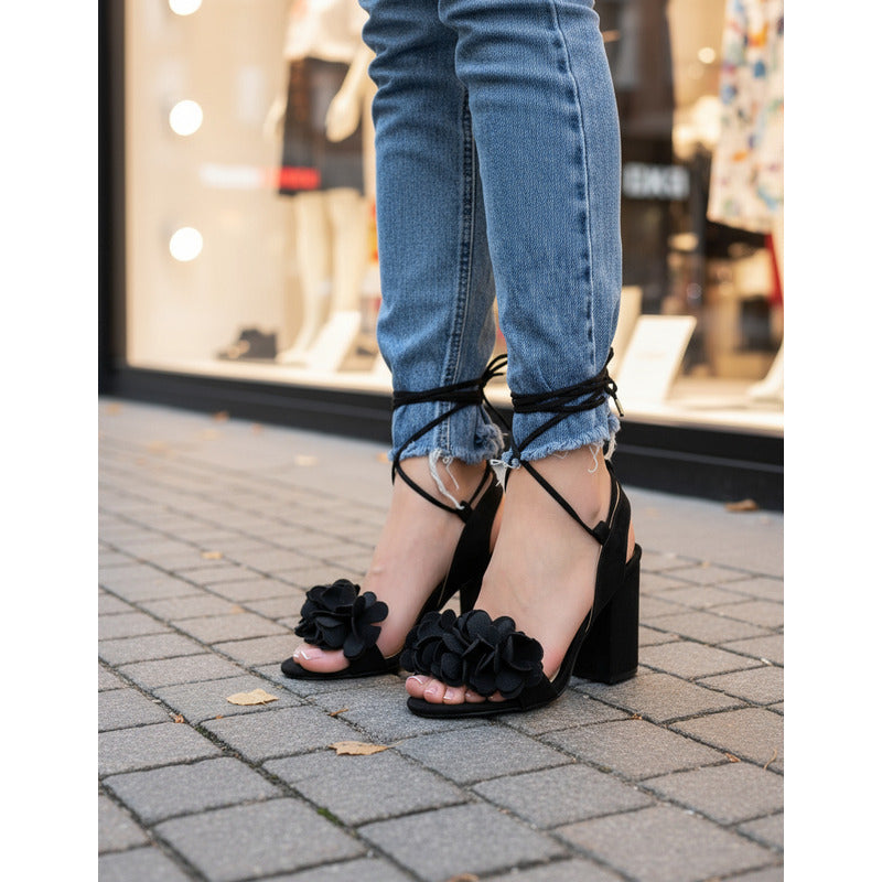 HERMOSAS Y ELEGANTES ZAPATILLAS ALTAS DE TACON CUADRADO CON TIRAS PARA ATAR EN TOBILLO O TIPO GLADIADOR. ALTURA: 6 CM