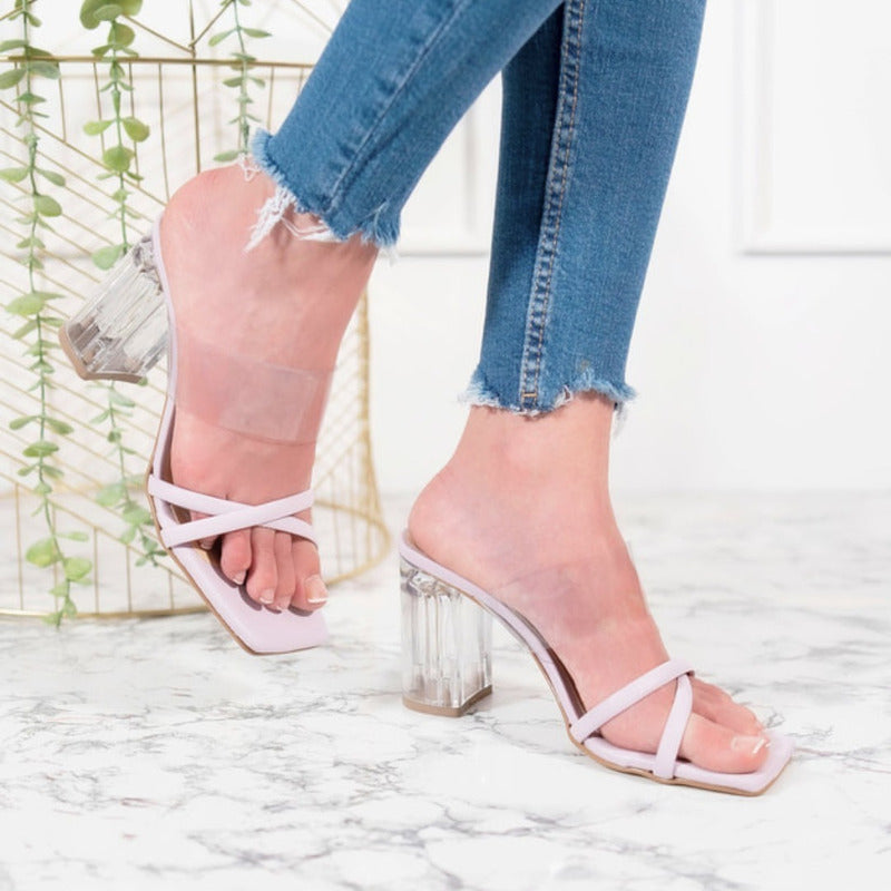Zapatillas Tacón Transparente Tiras Cruzadas