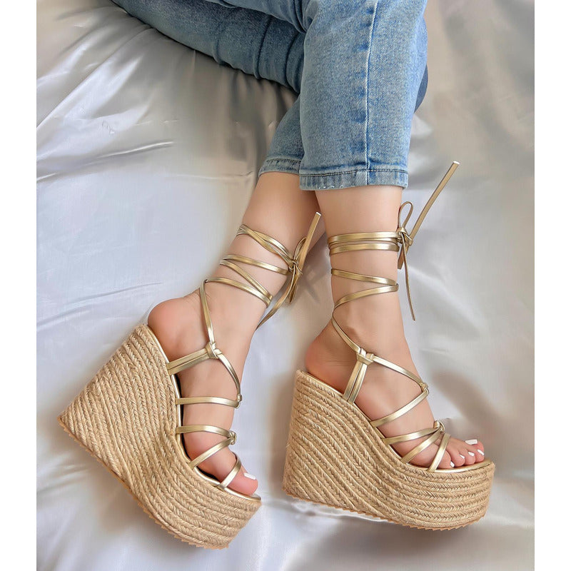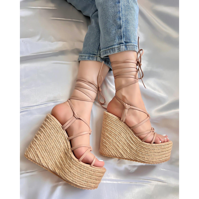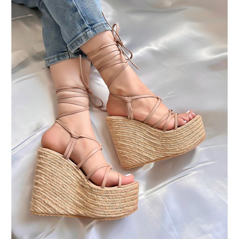 Alpargata con Plataforma corrida con detalle de tiras para amarrar. ALTURA: 13 CM APROX.