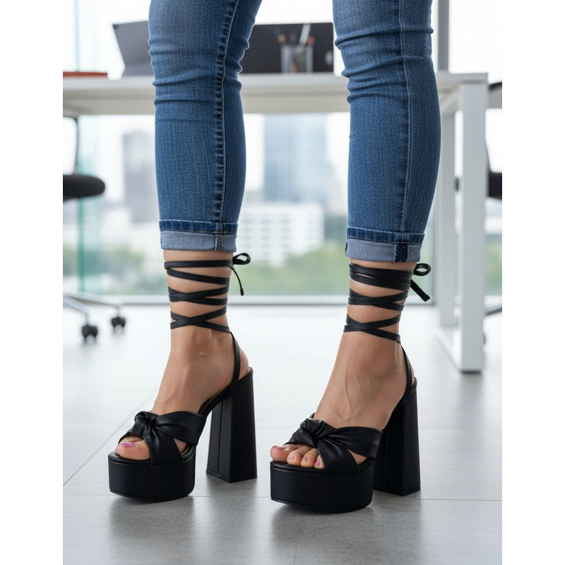 Plataformas Tacon Grueso Tiras Para Amarrar