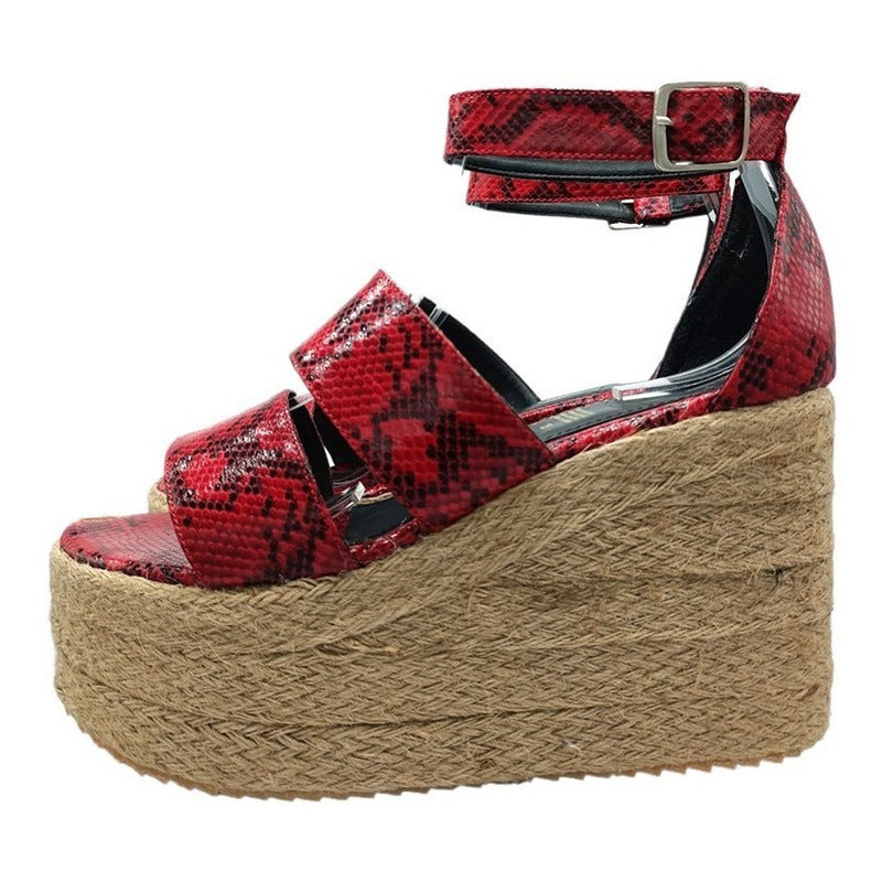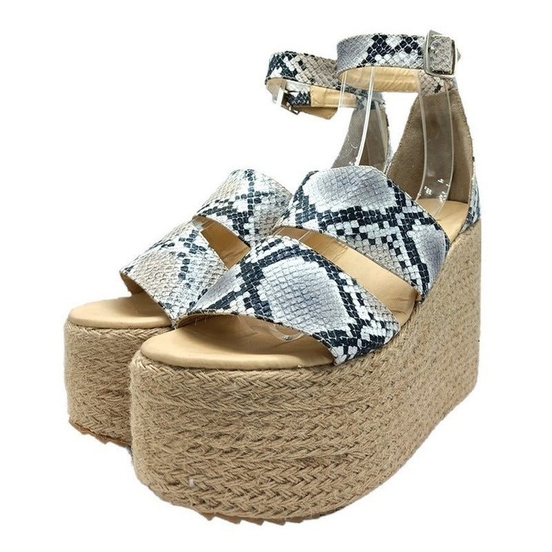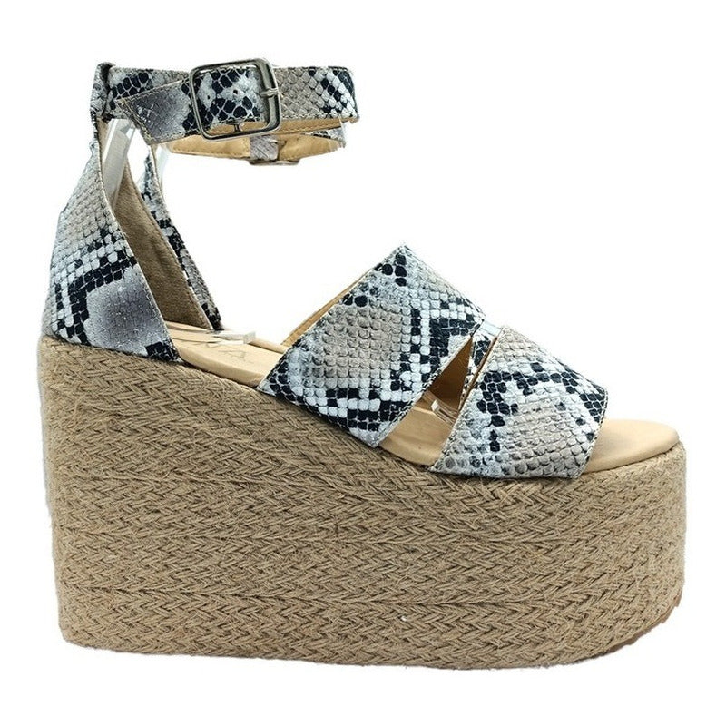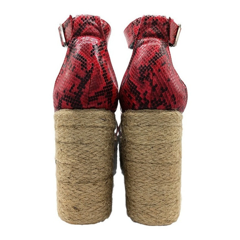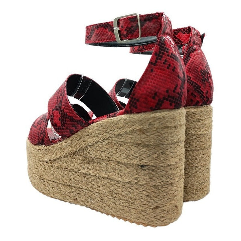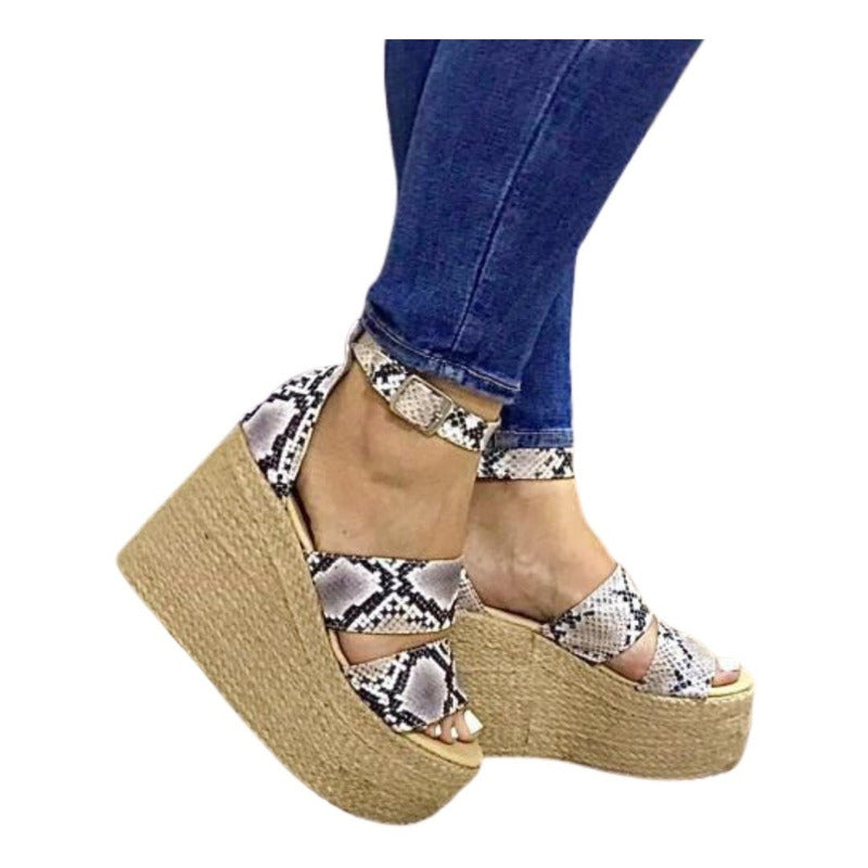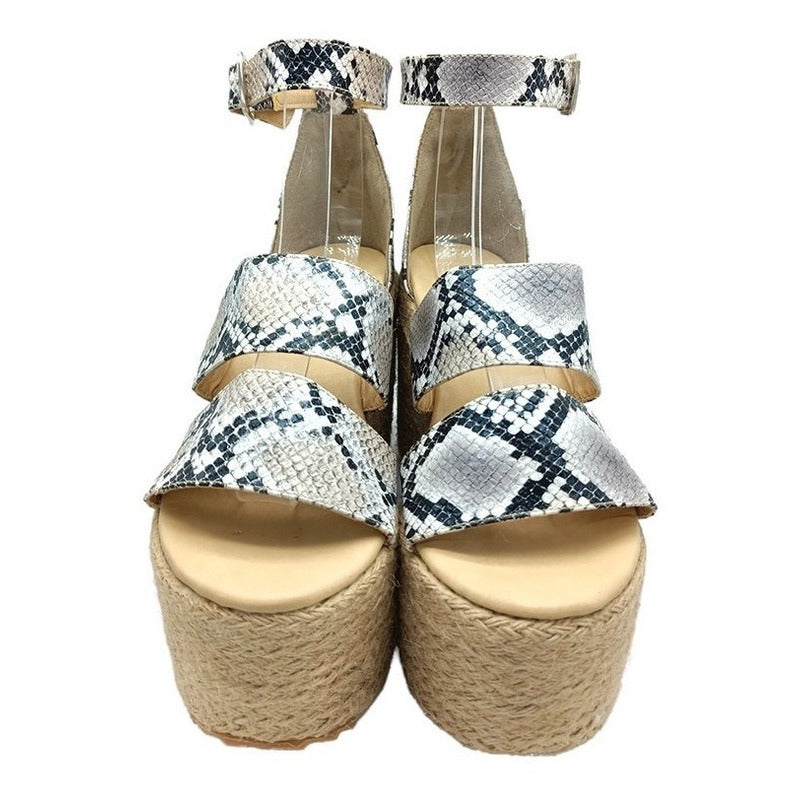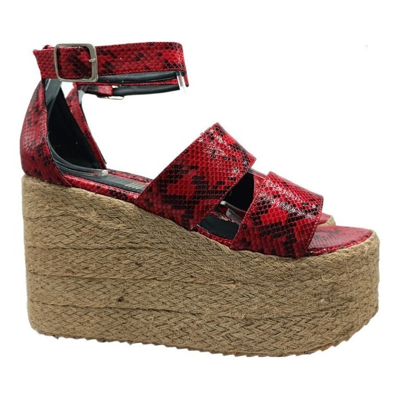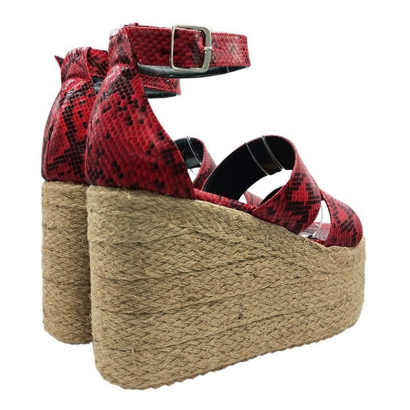 Plataformas forradas de yute con print de serpiente. Altura: Talón de 11 cm. y Puntera de 7 cm. - Material 100% sintético / Yute natural - Excelente calidad - Cómodos y confortables por dentro - Altura: Talón de 11 cm y Puntera de7 cm.