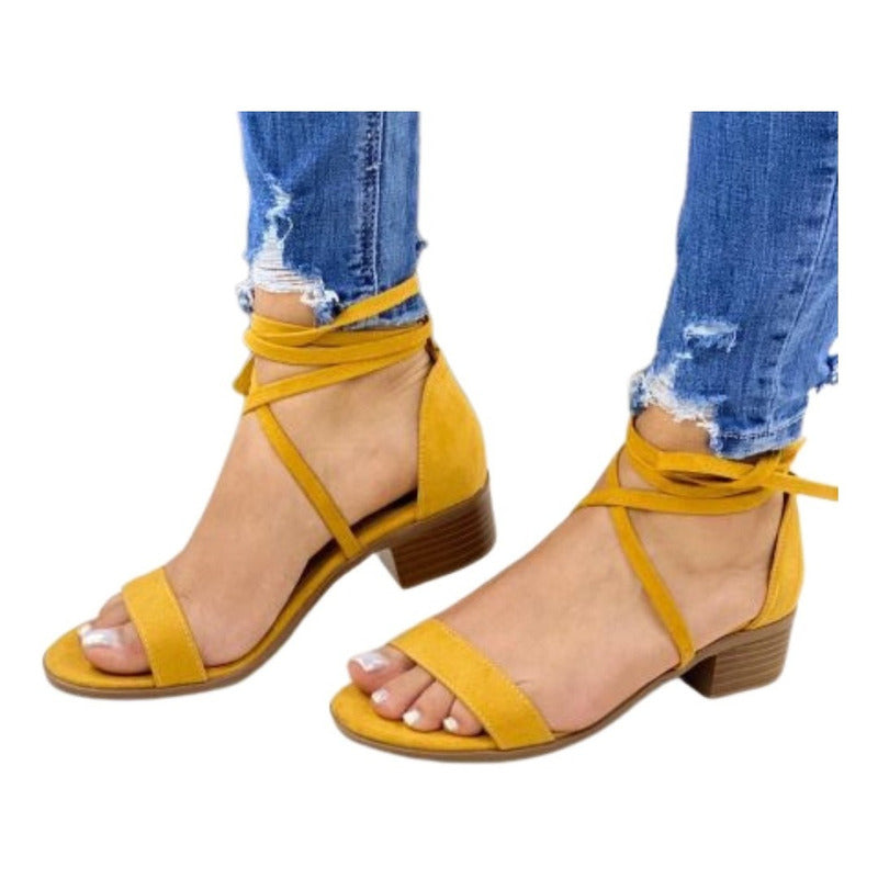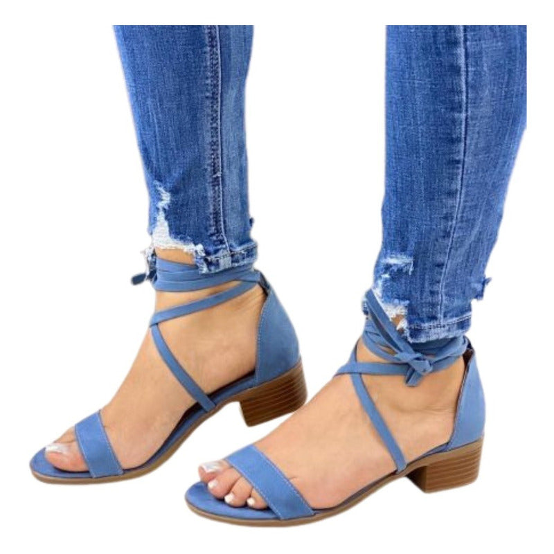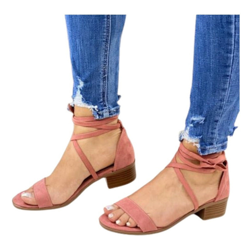 Huaraches Dama Sandalias Casuales Tacón Bajo Amarre Tobillo