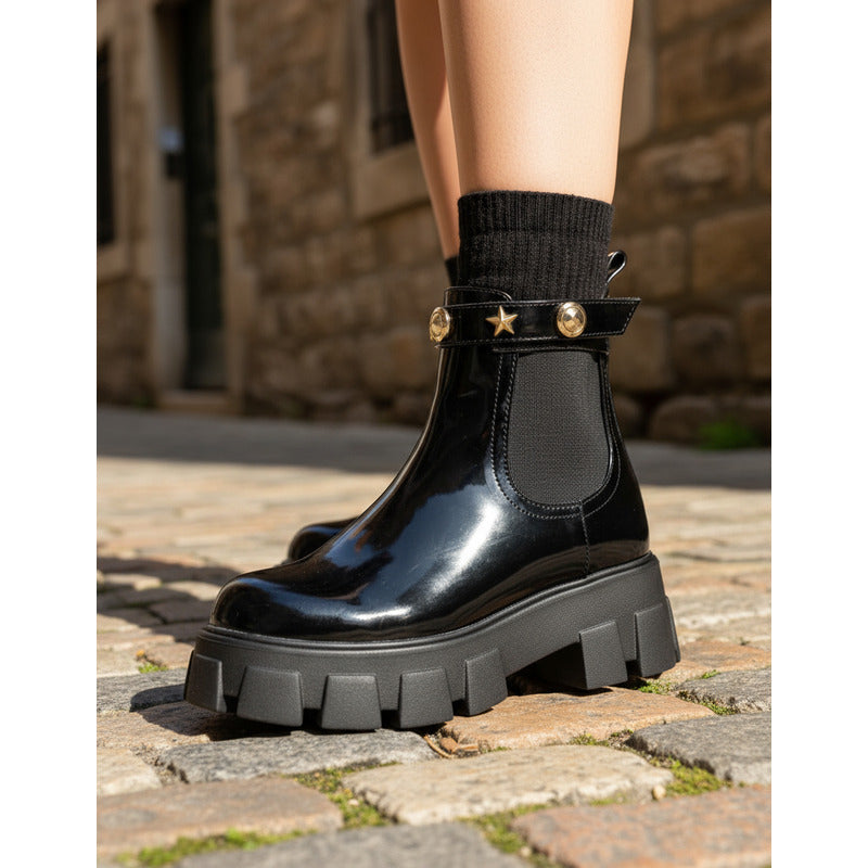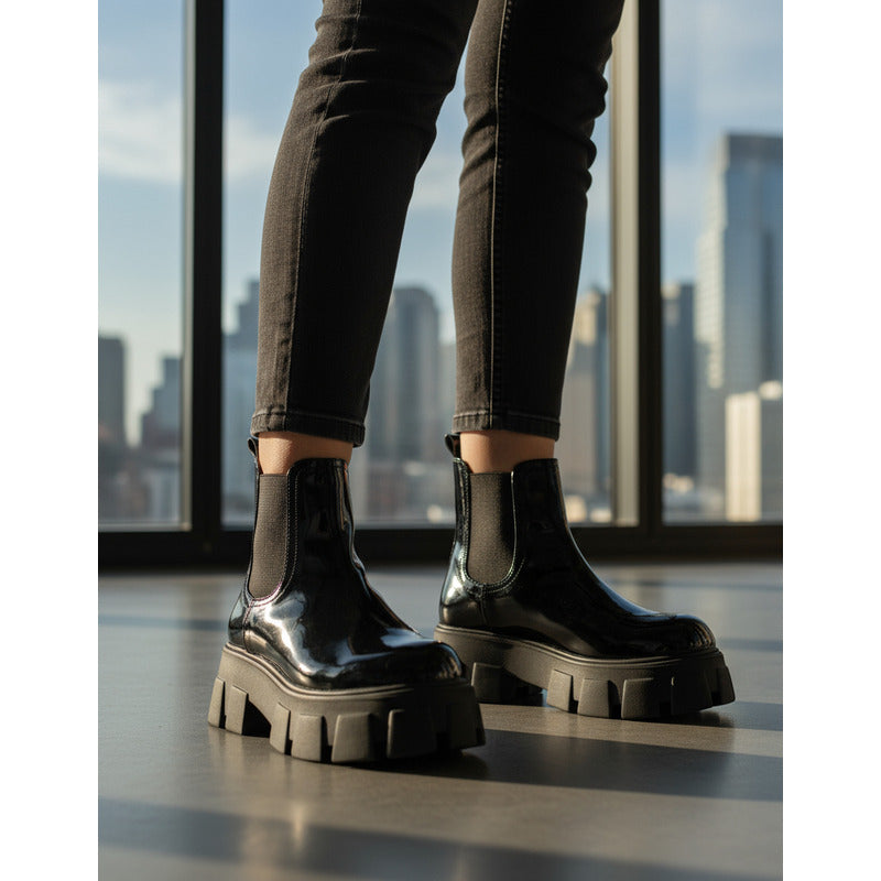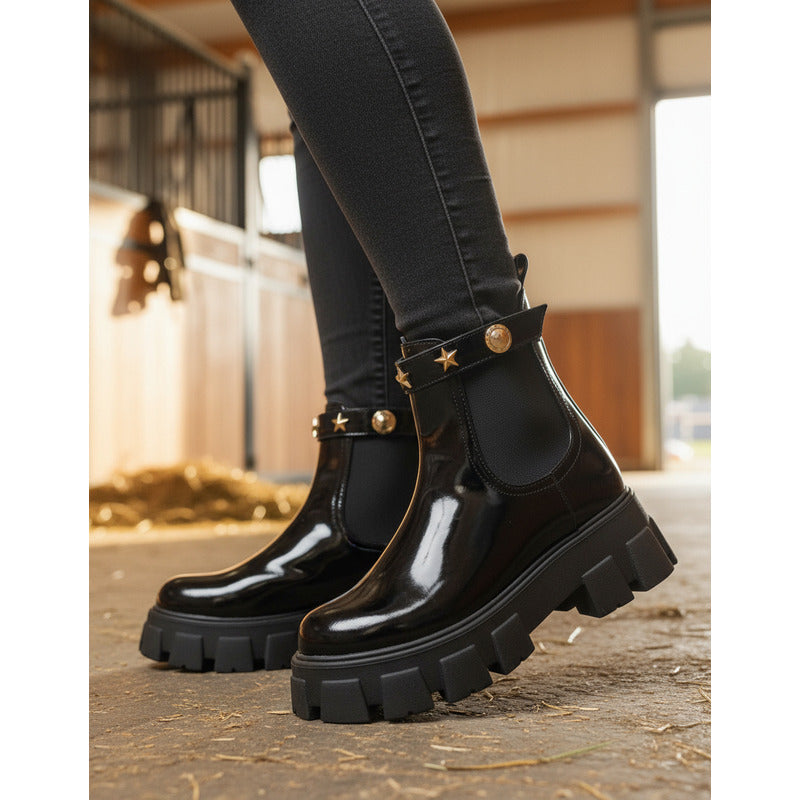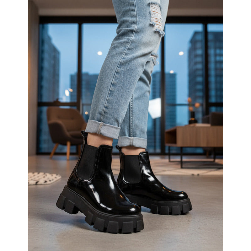 Bota Botin Charol Suela Tractor Patent Leather Boots