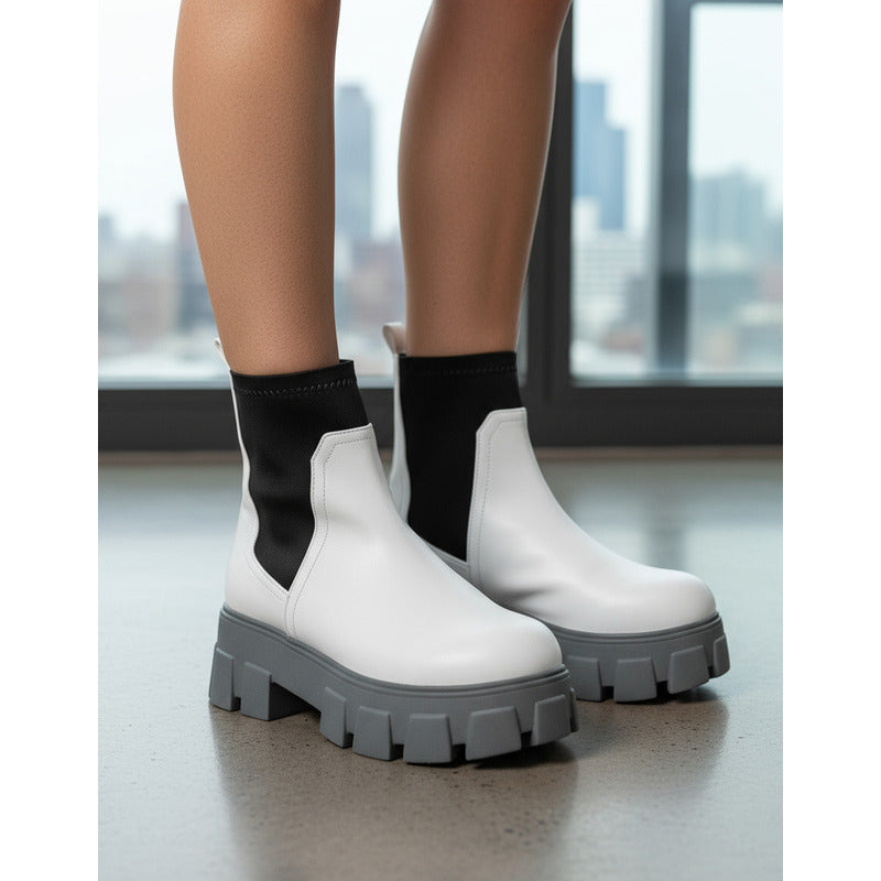 Botín Plano De Piel Sintética Color Blanco
