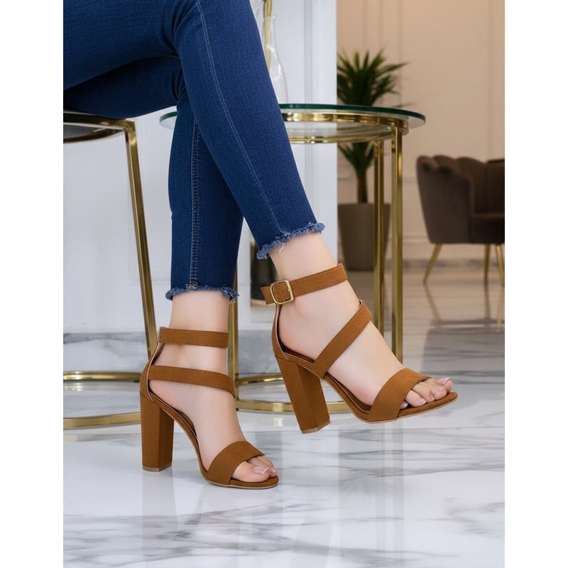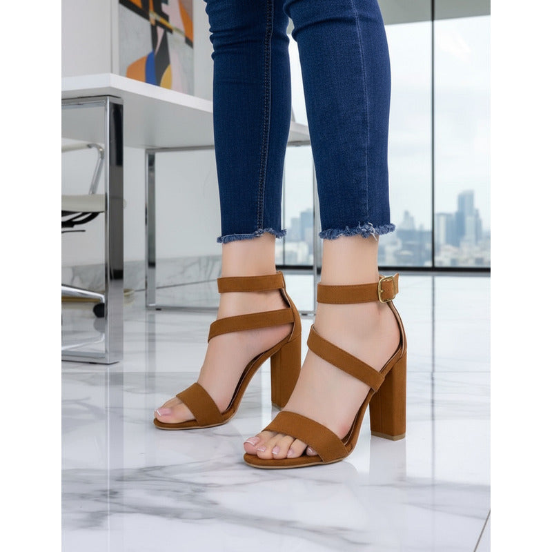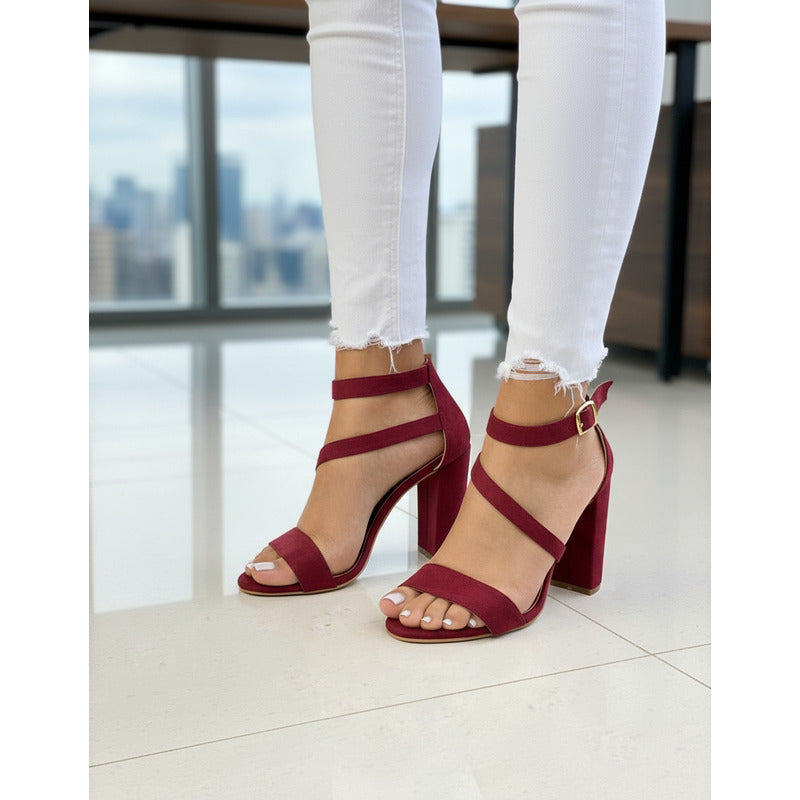 Zapatilla Mujer Tacón Cuadrado Pulsera Tobillo Tira Cruzada
