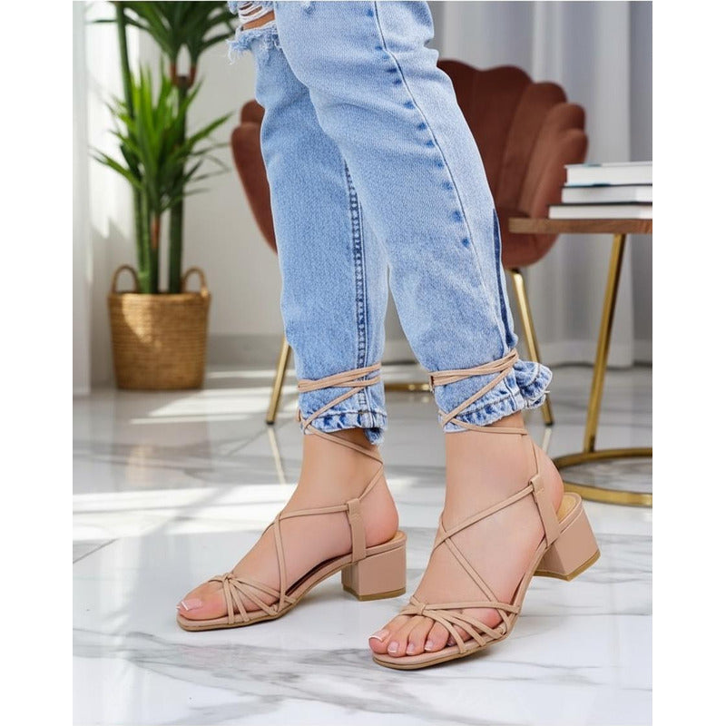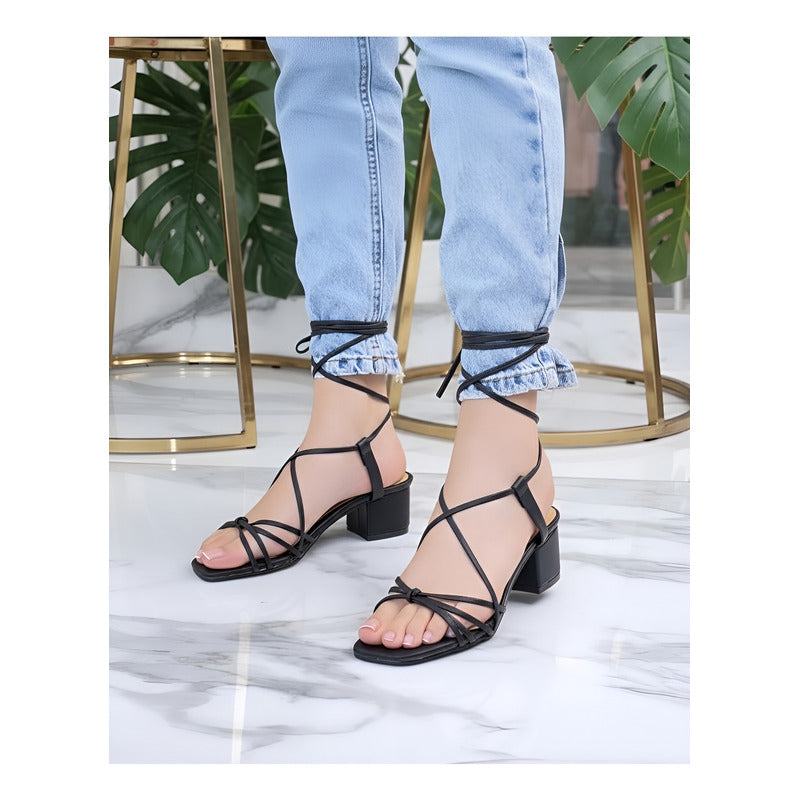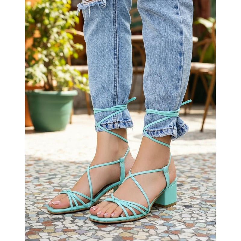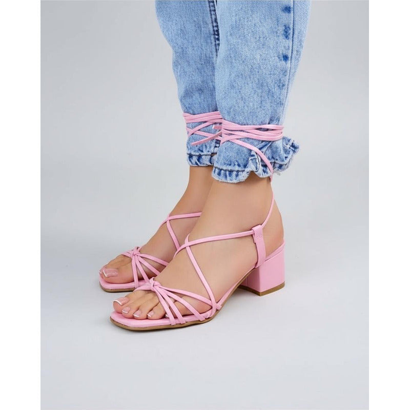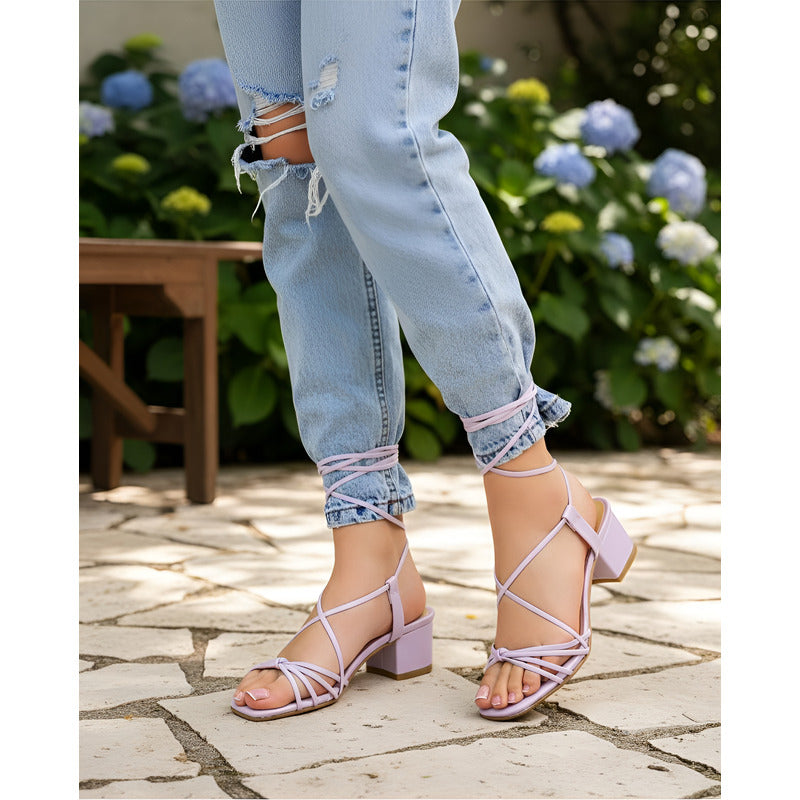 Zapatillas Sandalia De Tacón Cuadrado De Tiras Con Lazo