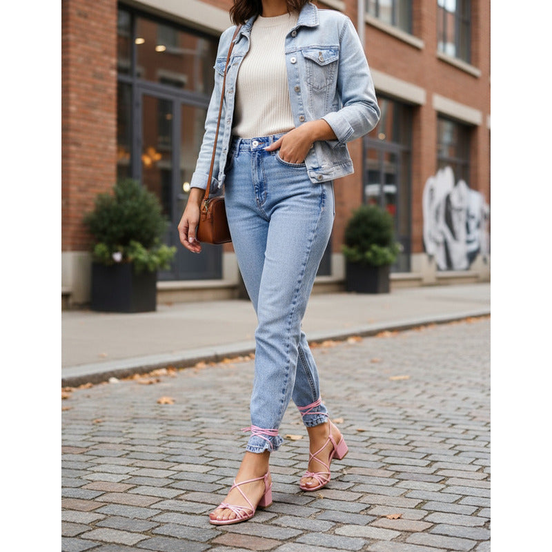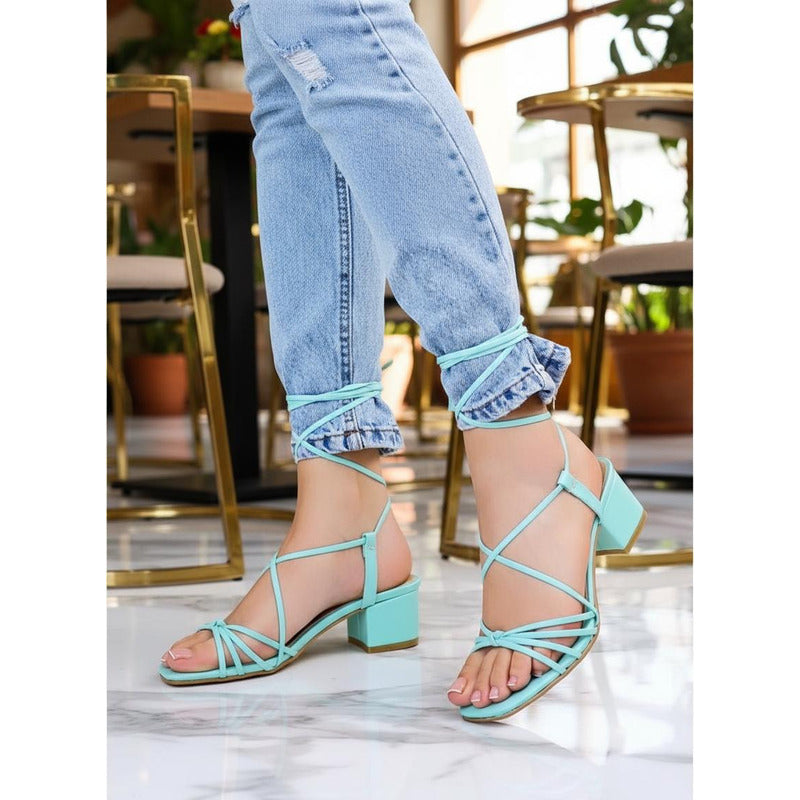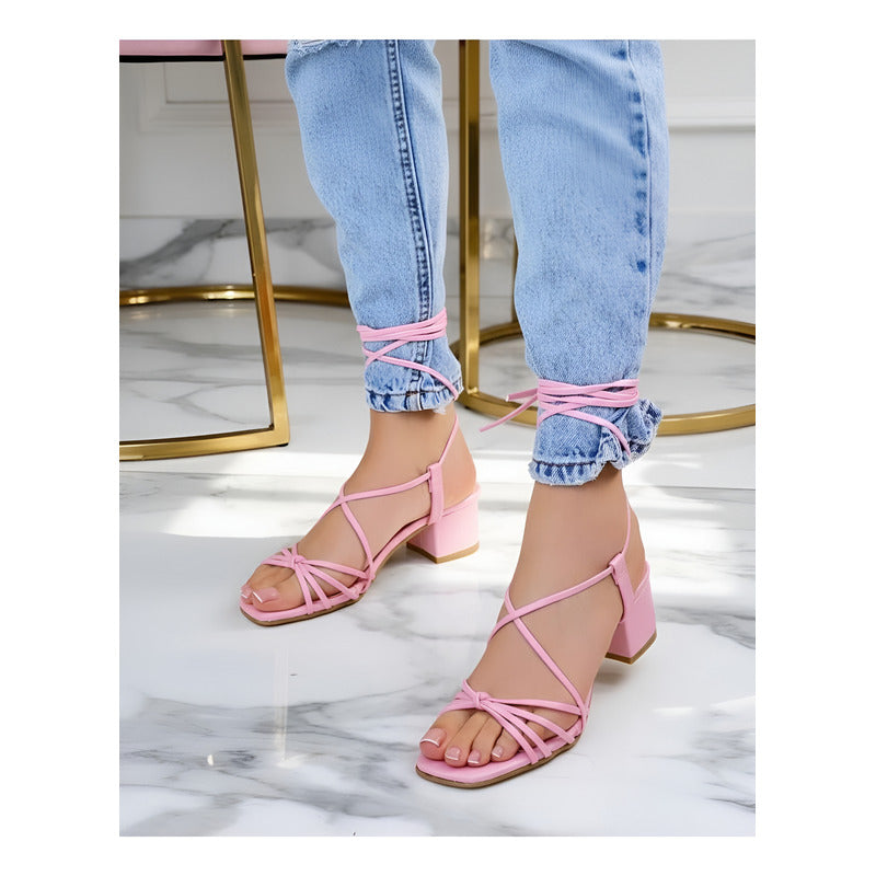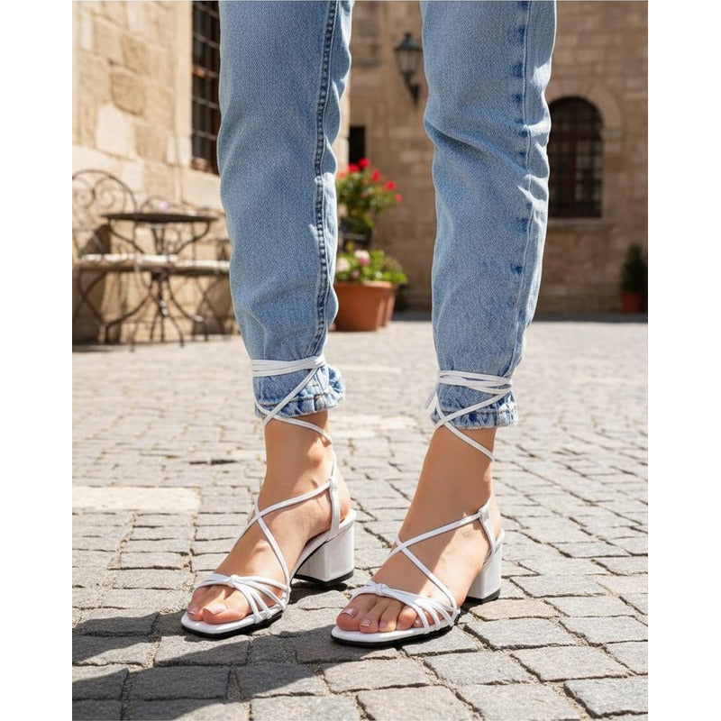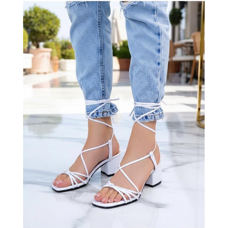 Zapatillas Sandalia De Tacón Cuadrado De Tiras Con Lazo
