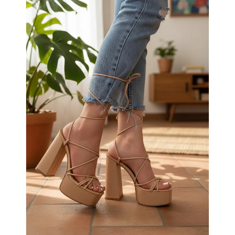 Zapatillas Tacón Grueso Plataformas Dama Tiras Amarrar