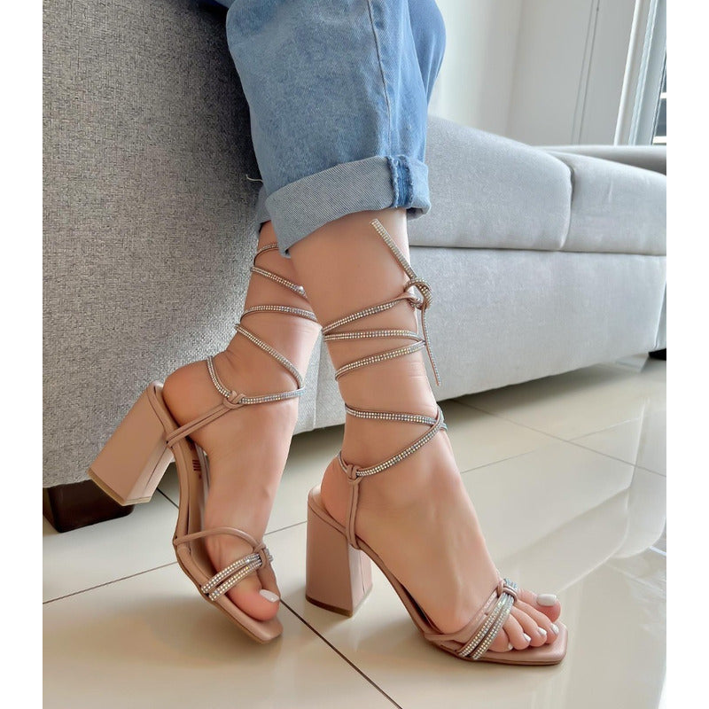 Su diseño con amarre al tobillo estiliza la pierna y permite un ajuste perfecto, mientras que su tacón ancho, disponible en diferentes alturas, garantiza comodidad y estabilidad en cada paso. Fabricadas en material sintético premium, son suaves, resistentes y perfectas para usar durante varias horas sin cansancio.