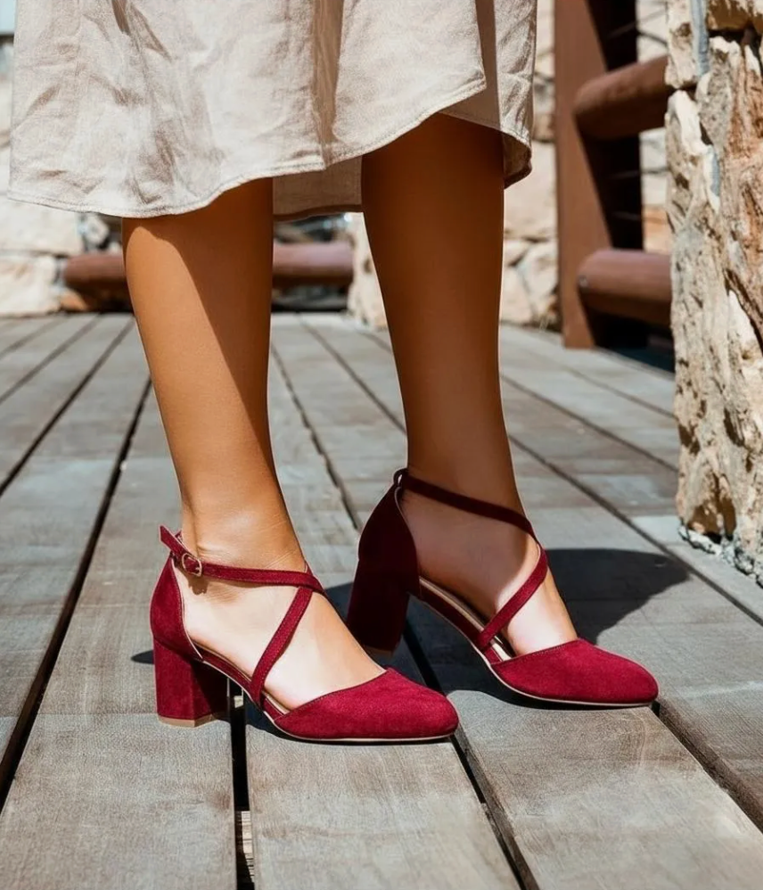 Su diseño con tirantes cruzados estiliza el empeine y aporta un ajuste seguro, mientras que su tacón 6 cms ofrece estabilidad y confort en cada paso. La punta semi-fina alarga visualmente la silueta del pie sin sacrificar comodidad.