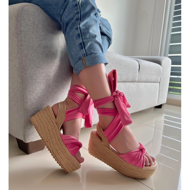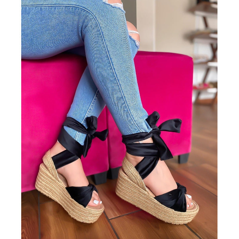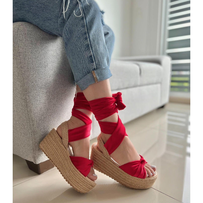 Sandalia Plataforma Suela Corrida Yute Lazo Amarrar