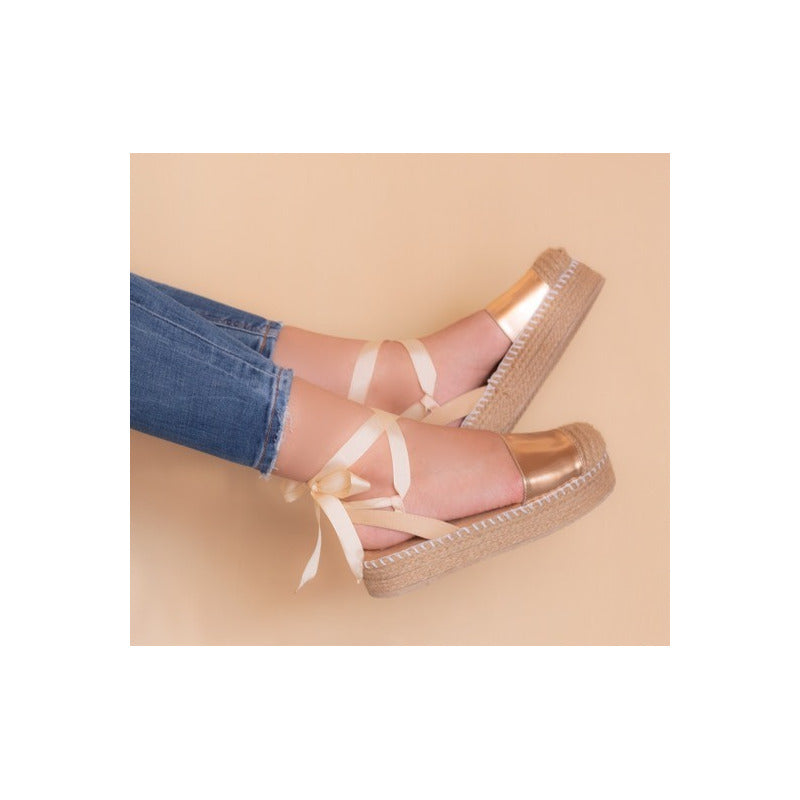 Alpargatas Tiras Atadas Oro Rosa Suela Yute