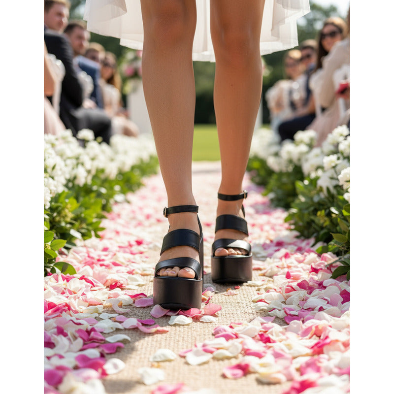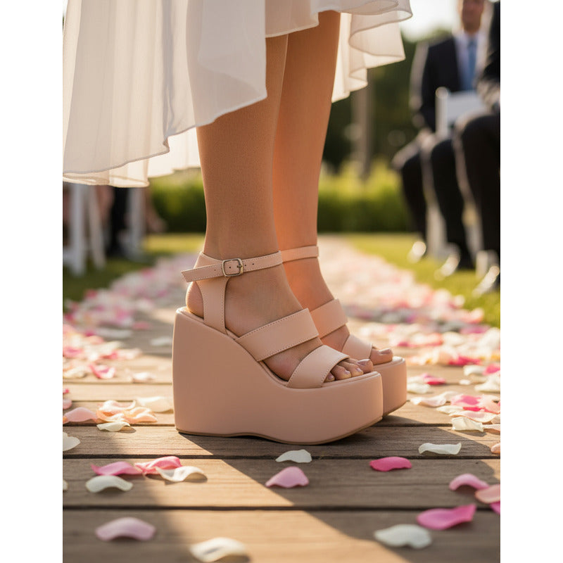 HERMOSAS Y COMODAS PLATAFORMAS DE TIRAS GRUESAS CON PULSERA EN TOBILLO. ALTURA TALÓN: 12 CM ALTURA PUNTA: 5 CM