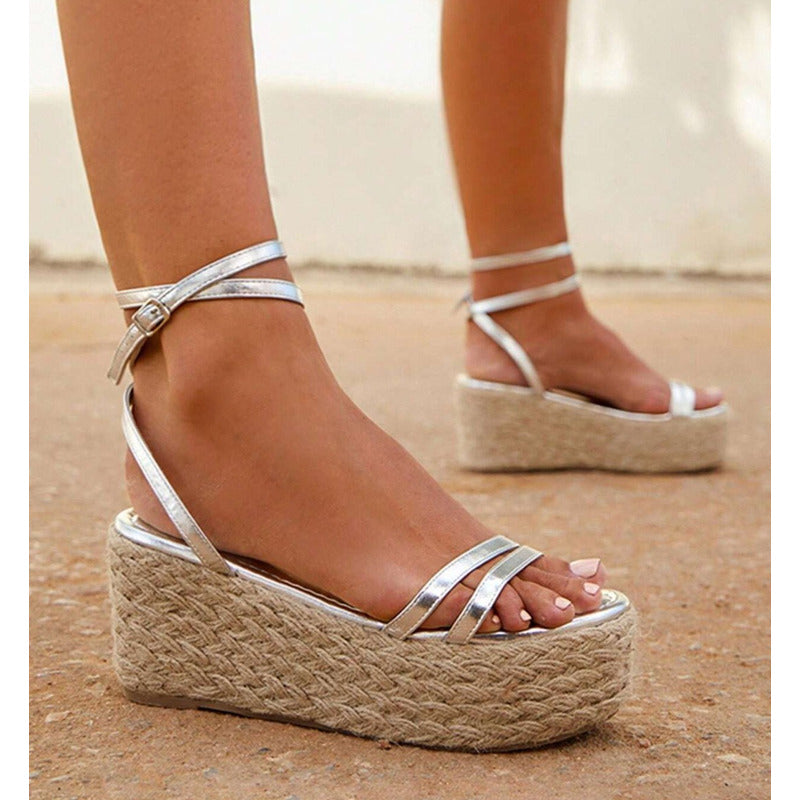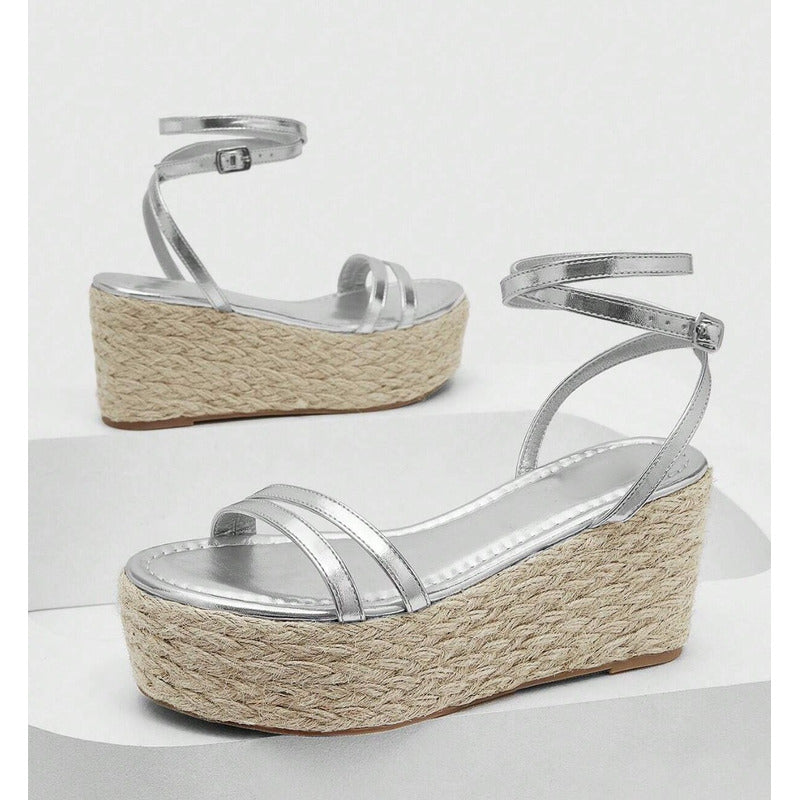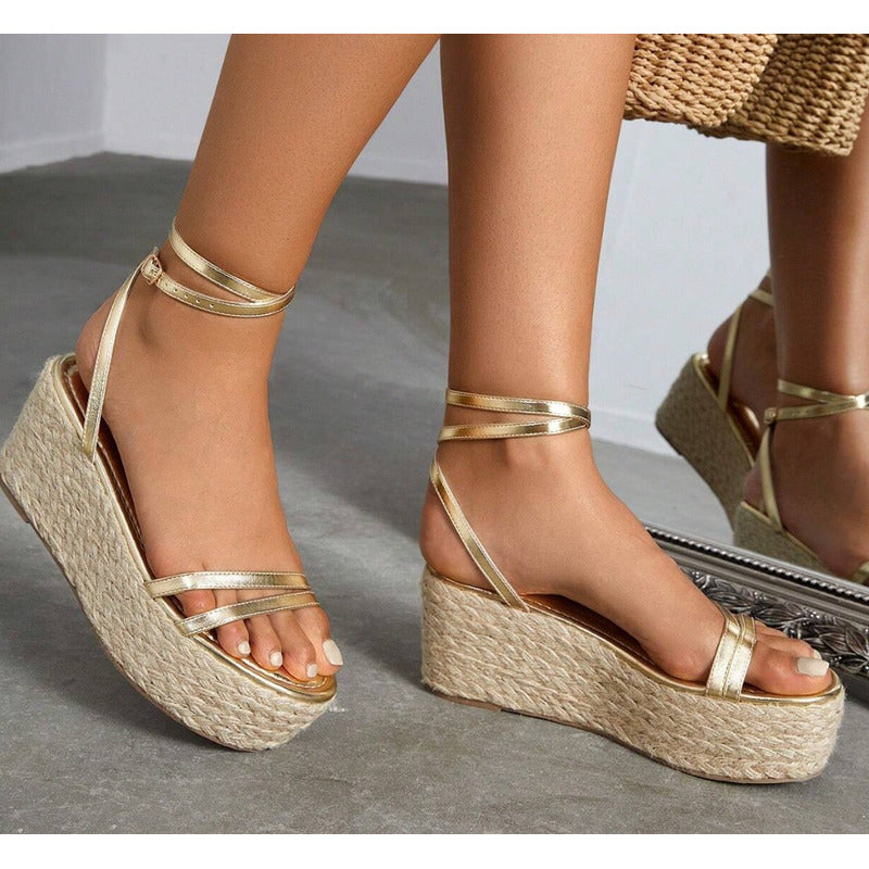 Sandalias de plataforma ligeras, femeninas y súper cómodas, diseñadas para estilizar tu look sin perder estabilidad. Cuentan con tiras delgadas metálicas que envuelven el pie y el tobillo, creando un acabado elegante y muy favorecedor. Ideales para outfits veraniegos, vacaciones, eventos casuales o para elevar tus looks del día a día.
